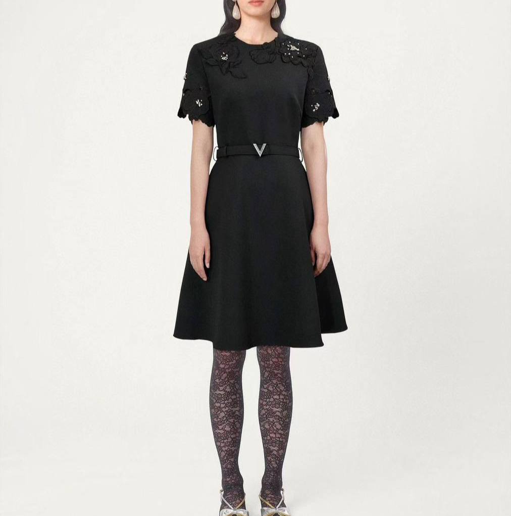 Платье Valentino LUX-113674 — это элегантное черное платье с поясом, созданное для стильных образов. Платье выполнено в классическом стиле, имеет приталенный силуэт, который подчеркивает фигуру. Оно подойдет для различных мероприятий, от деловых встреч до вечерних выходов.
