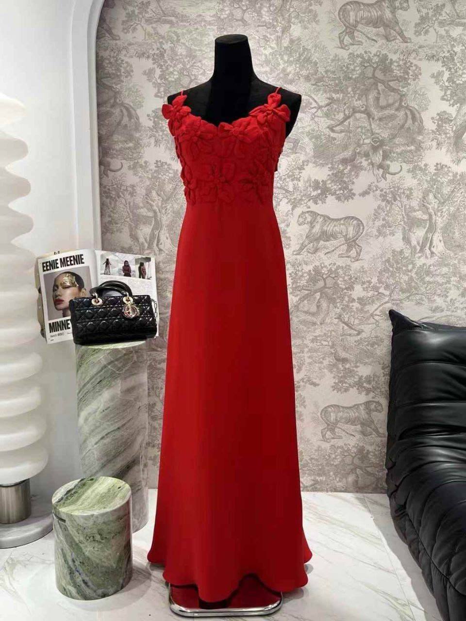 Платье Valentino LUX-117435 — это роскошное вечернее платье ярко-красного цвета, сочетающее элегантность и женственность. Верхняя часть платья украшена цветочным декором, а низ выполнен в классическом прямом крое, создавая утонченный силуэт. Идеально подойдет для торжественных мероприятий и особых случаев.