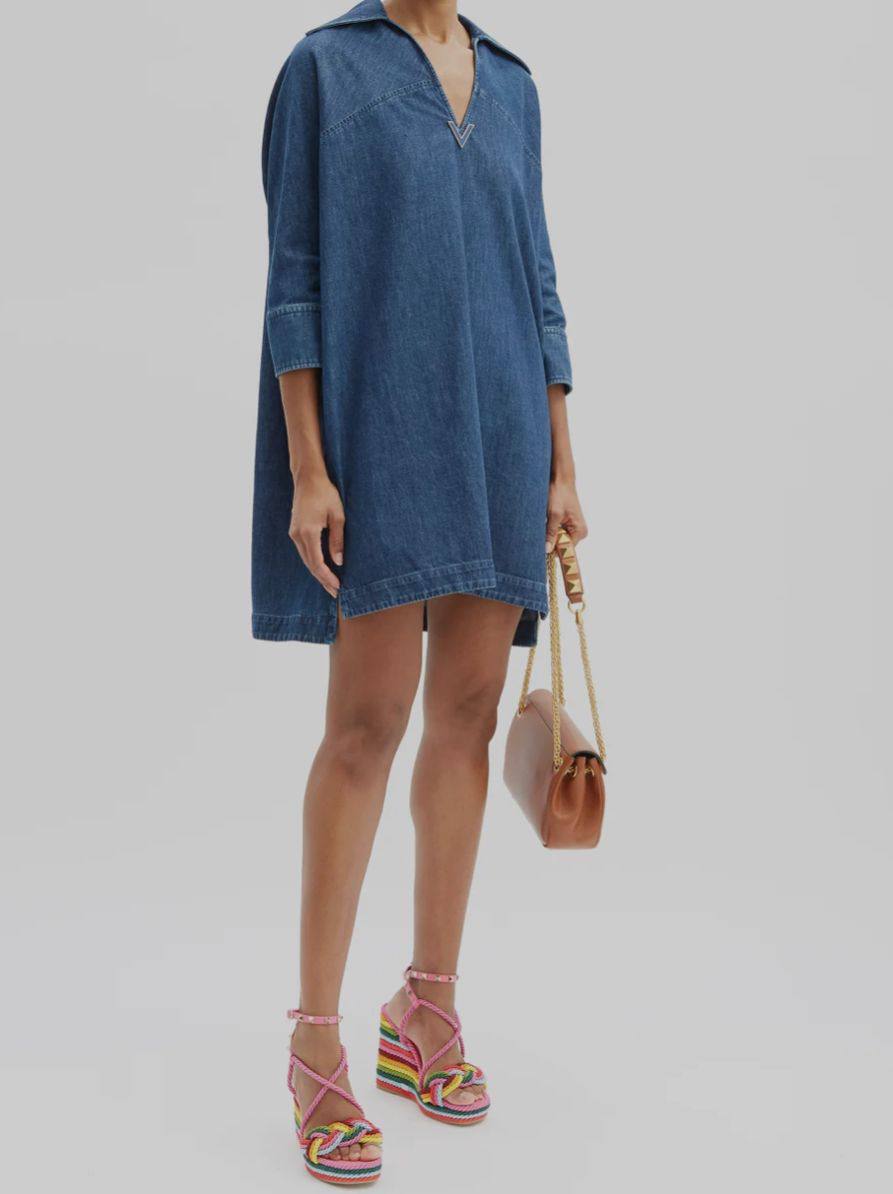 Платье-рубашка Valentino LUX-67236 представляет собой стильное и современное решение для вашего гардероба. Изделие выполнено в свободном силуэте, подчеркивающем непринужденность образа. Детали, такие как отложной воротник и V-образный вырез, придают платью элегантность. Данная модель идеально подойдет как для повседневных прогулок, так и для более изысканных мероприятий, легко трансформируясь с помощью аксессуаров.