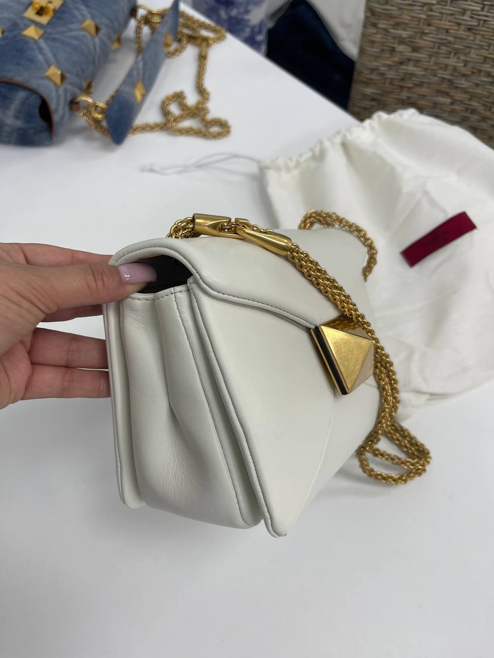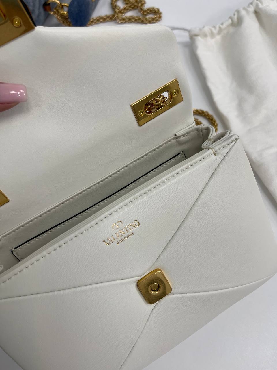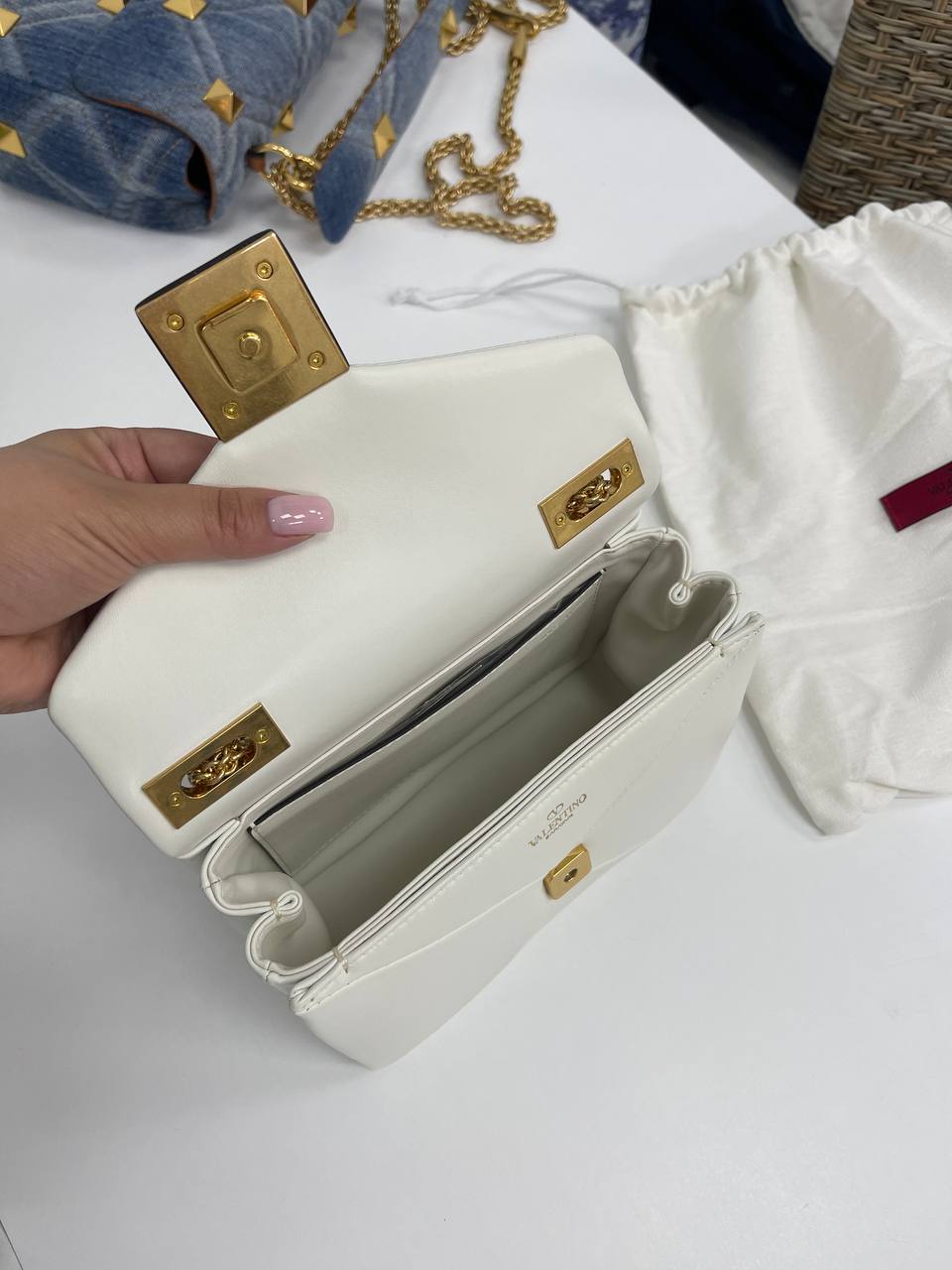 Сумка женская Valentino LUX-93649 — это элегантный аксессуар, выполненный в классическом стиле. Она выполнена в белом цвете с золотистой фурнитурой, имеет текстурированный внешний вид и станет прекрасным дополнением к любому образу. Сумка идеально подходит для повседневной носки и особых случаев.