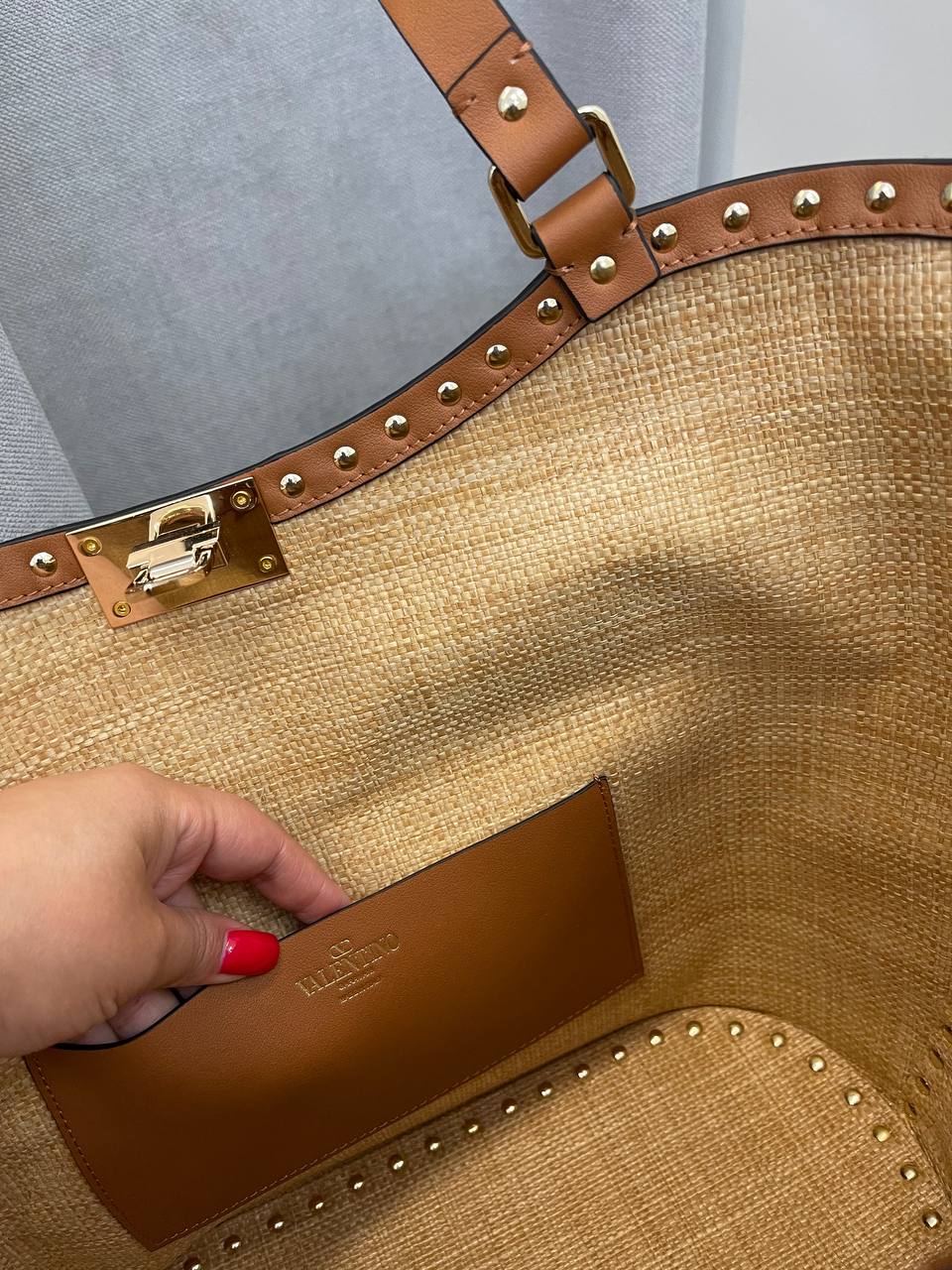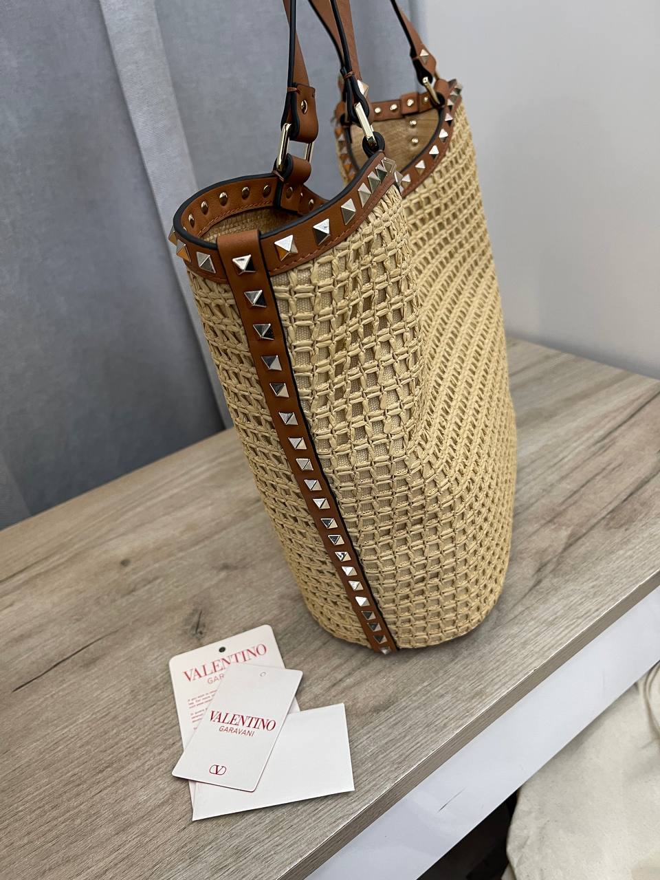 Сумка женская Valentino LUX-109128 - это стильный аксессуар, сочетающий в себе элегантность и практичность. Сумка выполнена в светлых тонах, с коричневыми кожаными ручками и отделкой. Ее текстура делает ее идеальным выбором для летних образов.