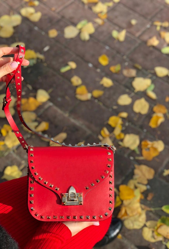 Стильная женская сумка Valentino СЖ-199 представлена в ярком красном цвете, дополненная золотистой фурнитурой и характерными для бренда шипами. Эта модель идеально подходит для создания эффектных образов, добавляя изысканности как повседневным, так и вечерним нарядам. Ее компактный размер делает ее удобным аксессуаром для переноски предметов первой необходимости.