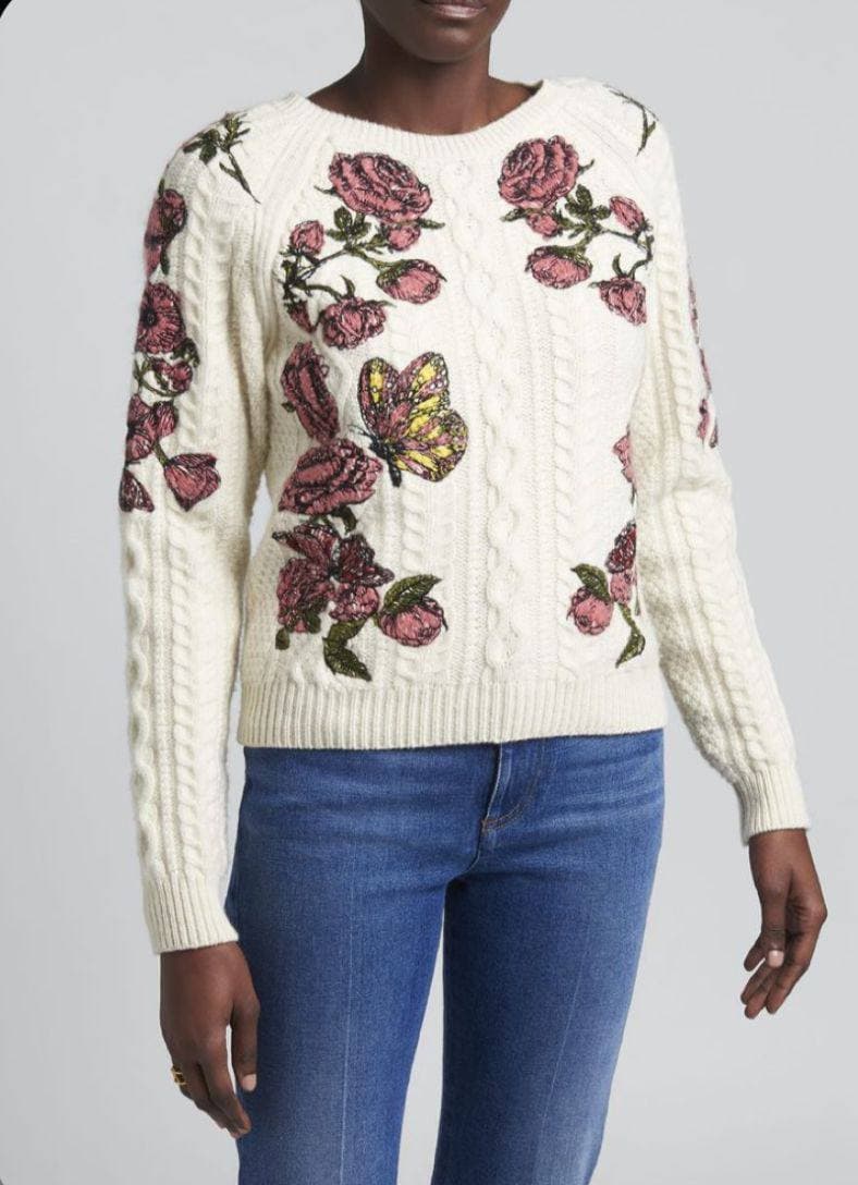 Этот свитер Valentino LUX-58819 представляет собой элегантный и женственный предмет одежды, выполненный в классическом стиле. Он украшен эффектной вышивкой в виде роз и бабочек, создающей неповторимый образ. Свитер идеально подходит для создания стильных повседневных и вечерних образов.