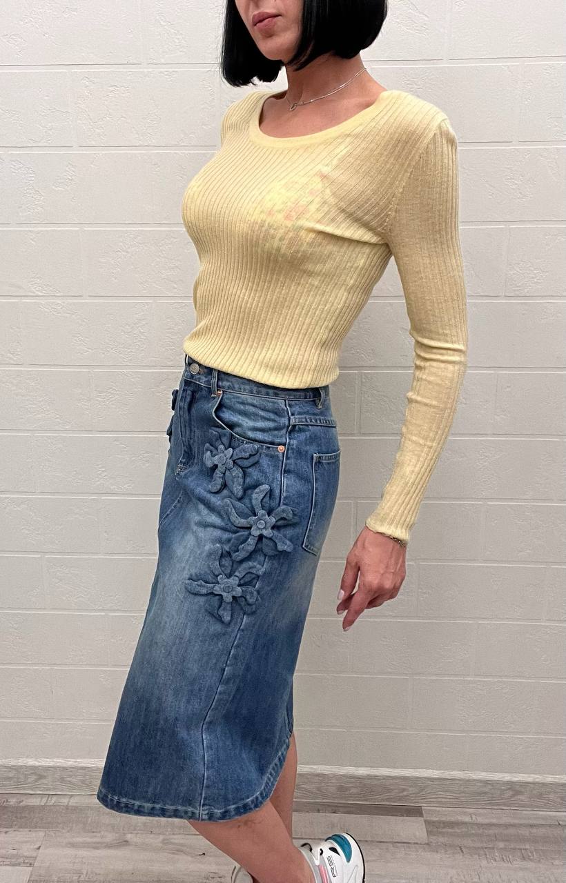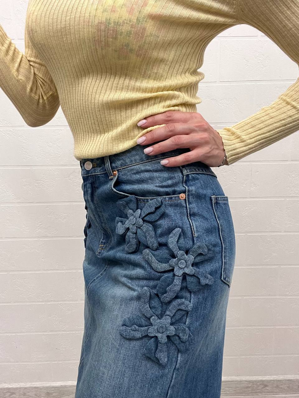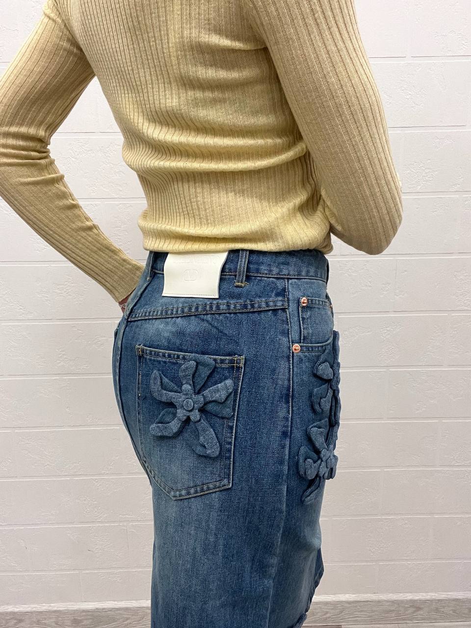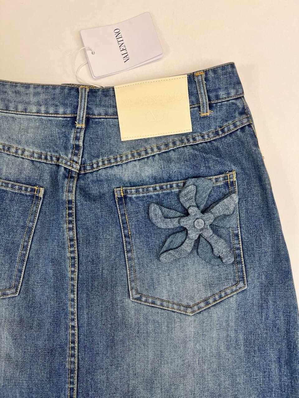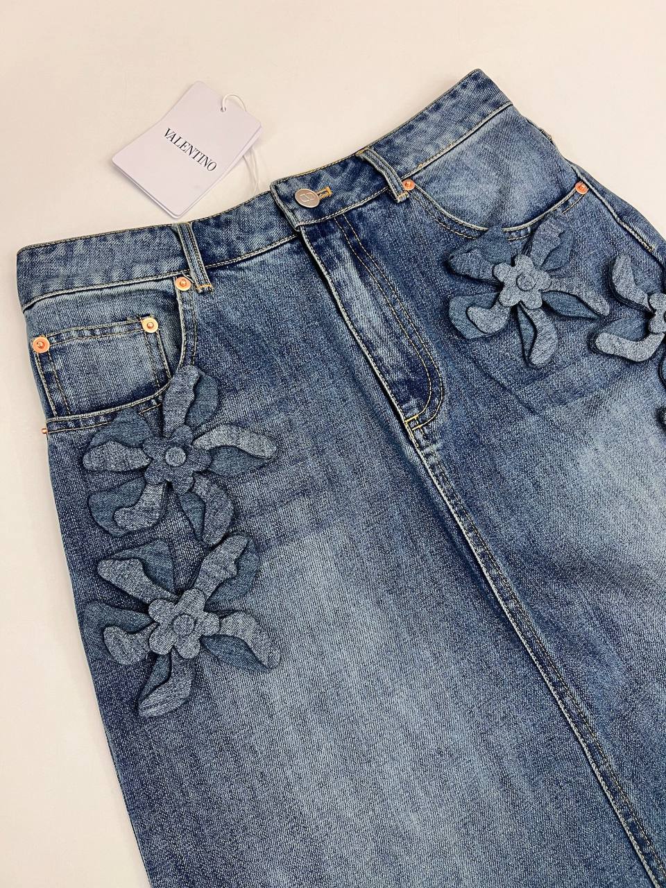 Юбка Valentino LUX-109069 — это стильная джинсовая юбка с декоративными цветами, которая является воплощением элегантности и утонченности. Юбка выполнена в классическом синем цвете, что делает ее универсальной и подходящей для различных образов. Особенностью модели являются объемные цветочные аппликации, расположенные сбоку юбки, добавляя изделию нотку оригинальности и женственности.