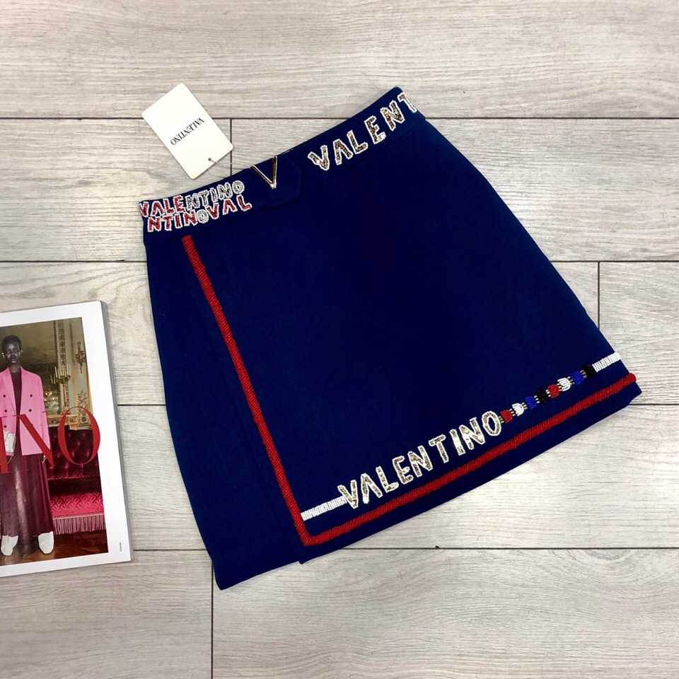 Юбка Valentino ОДЖ-174 представляет собой стильную модель, выполненную в темно-синем цвете, подчеркивающую элегантность бренда Valentino. Модель украшена контрастной вышивкой с названием бренда и бисером, что придает ей уникальность и роскошный вид. Эта юбка идеально подойдет для создания изысканных образов как для повседневного ношения, так и для особых случаев.
