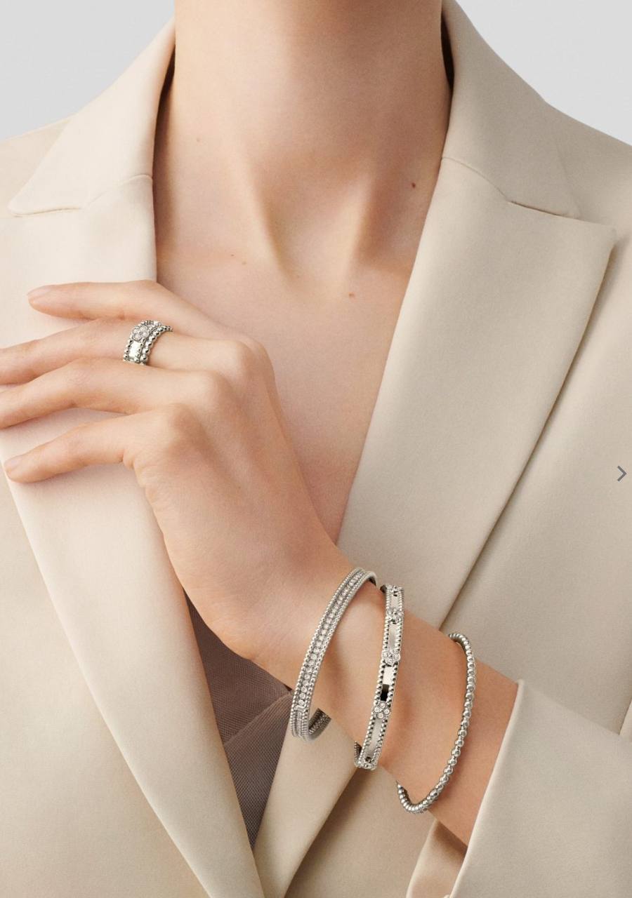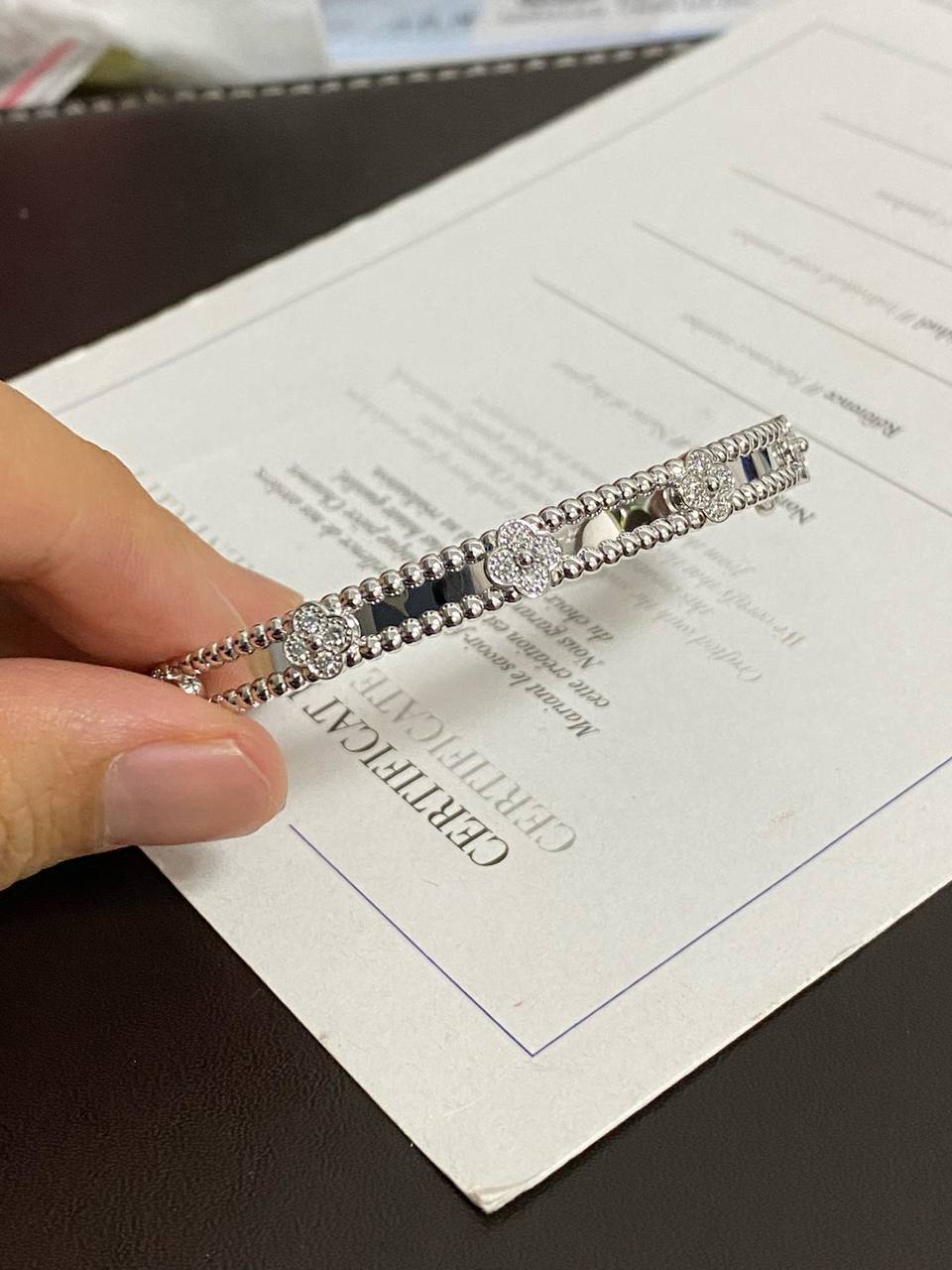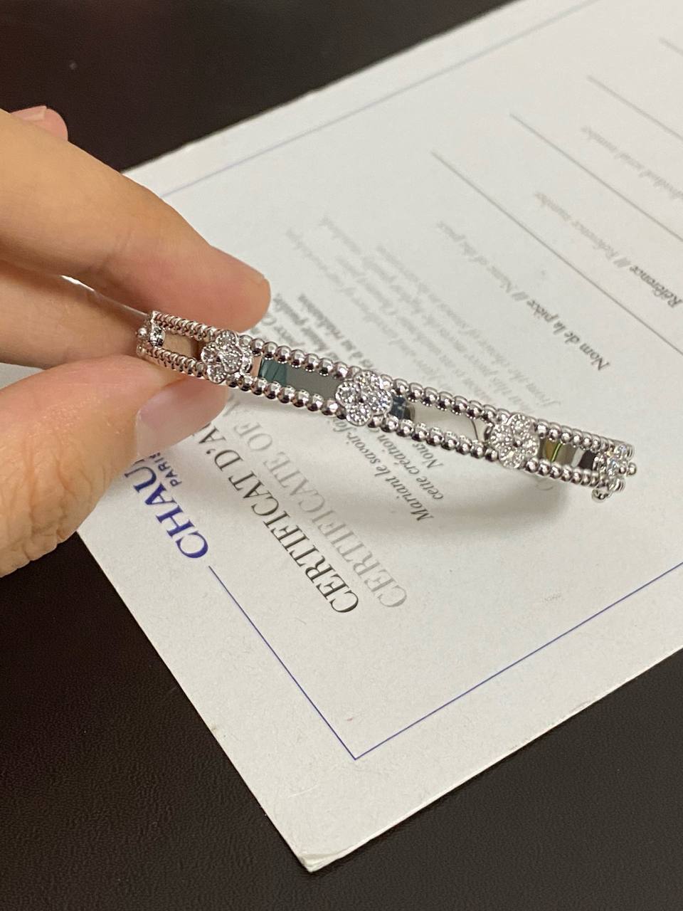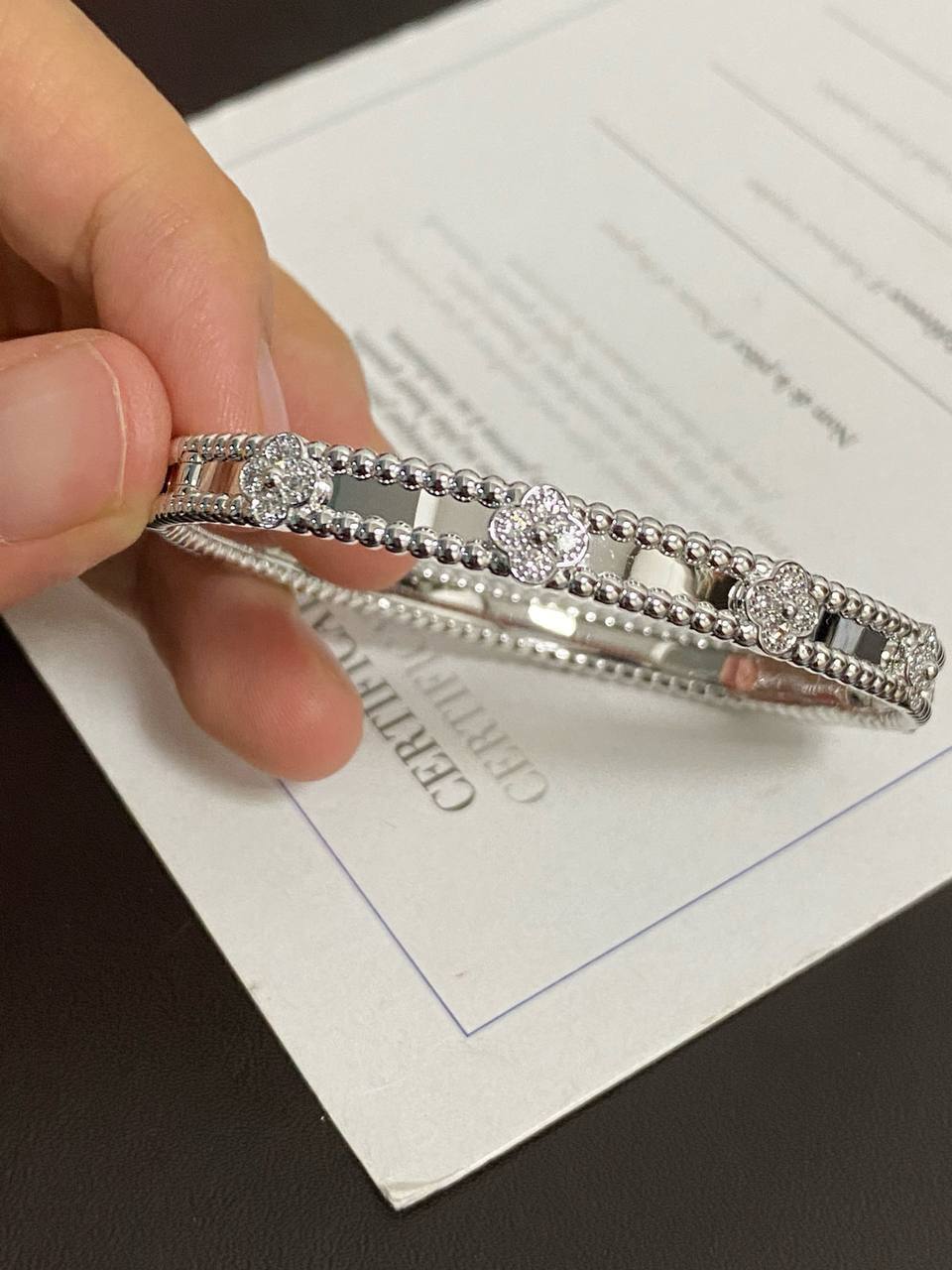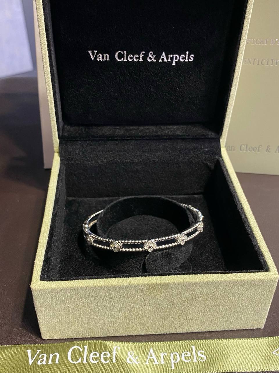 Браслет коллекция Perlеe Sweet Clovers белое золото 18 карат с родиевым покрытием, бриллианты Van Cleef LUX-116362