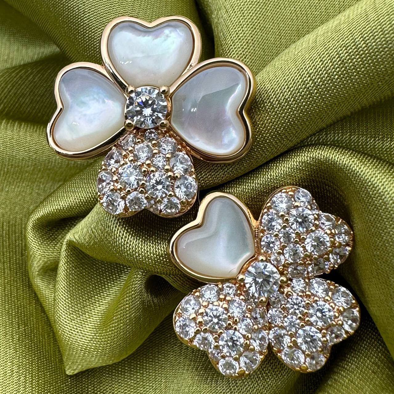Кольцо Van Cleef LUX-107031 – это изысканное украшение, выполненное в узнаваемом стиле Van Cleef & Arpels. Кольцо имеет форму цветка, лепестки которого выполнены из перламутра, а центральная часть украшена россыпью бриллиантов. Этот аксессуар прекрасно дополнит как повседневный, так и вечерний образ.
