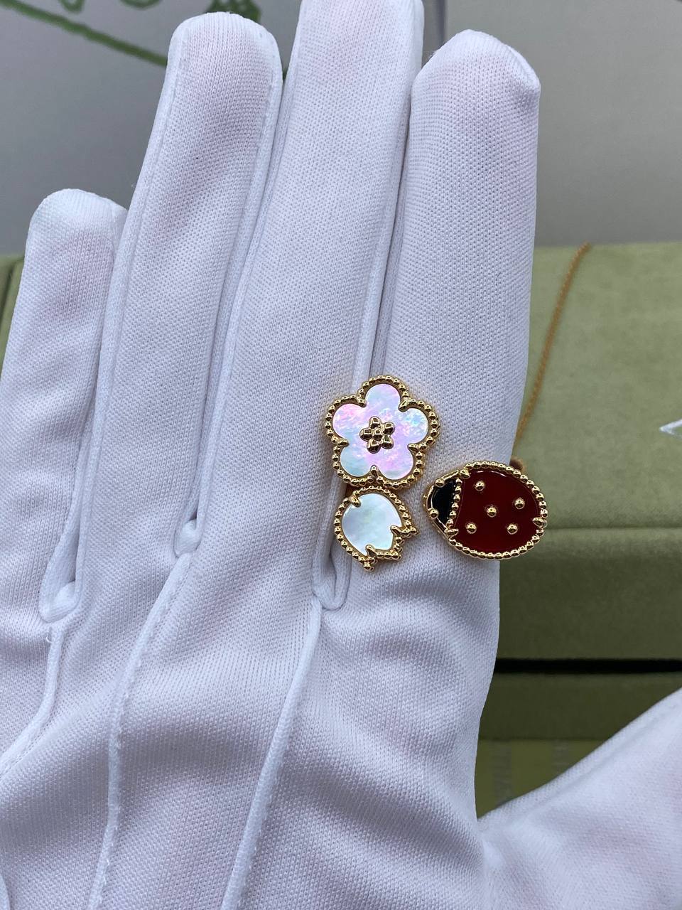 Кольцо Van Cleef LUX-88828 представлено в нежном и изысканном дизайне. Форма в виде цветка с перламутровыми вставками делает кольцо привлекательным и элегантным. Идеально подойдёт для создания как повседневных, так и вечерних образов.