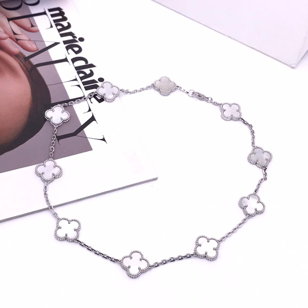 Подвеска 10 мотивов Van Cleef LUX-70677 представляет собой изысканное украшение, сочетающее в себе элегантность и утонченность. Этот аксессуар выполнен в классическом стиле, подчеркивающем женственность и изысканный вкус. Подвеска состоит из изящной цепочки, украшенной десятью мотивами в форме клевера.