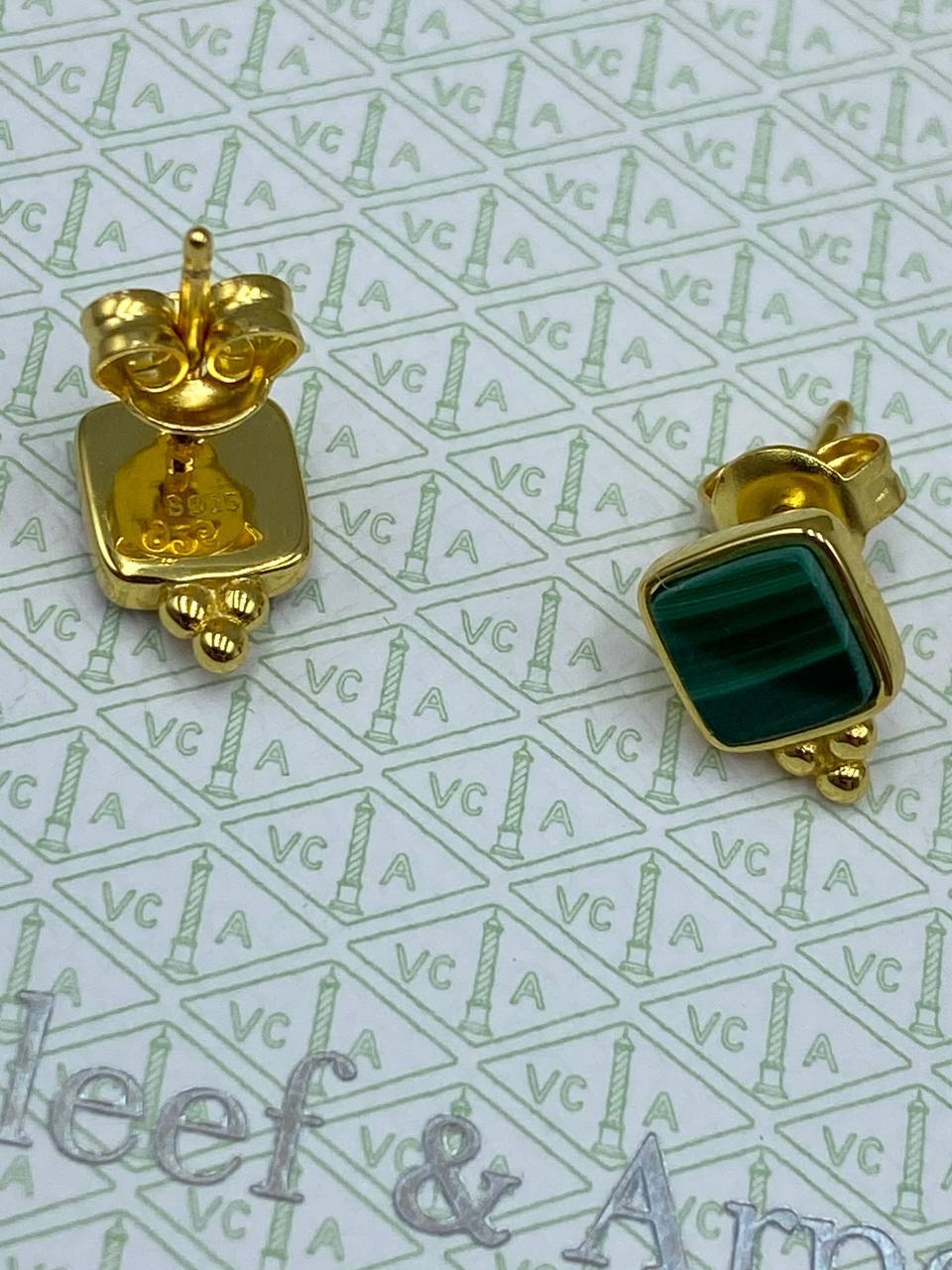 Серьги Van Cleef LUX-91554 — это элегантные серьги-гвоздики, представляющие собой классический аксессуар от известного бренда. Они имеют прямоугольную форму с золотистой окантовкой и вставкой из малахита. Эти серьги подойдут для различных случаев, добавляя изысканность любому образу.