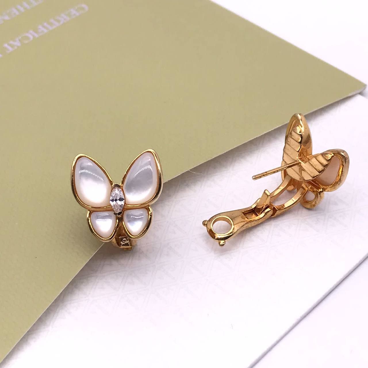 Серьги Van Cleef LUX-60633 представляют собой изысканное ювелирное изделие в форме бабочки, выполненное в классическом стиле. Нежные перламутровые крылья бабочки инкрустированы сверкающими кристаллами, а золотистый корпус придает изделию роскошный вид. Эти серьги станут элегантным дополнением к любому образу, подчеркивая утонченный вкус своей обладательницы.