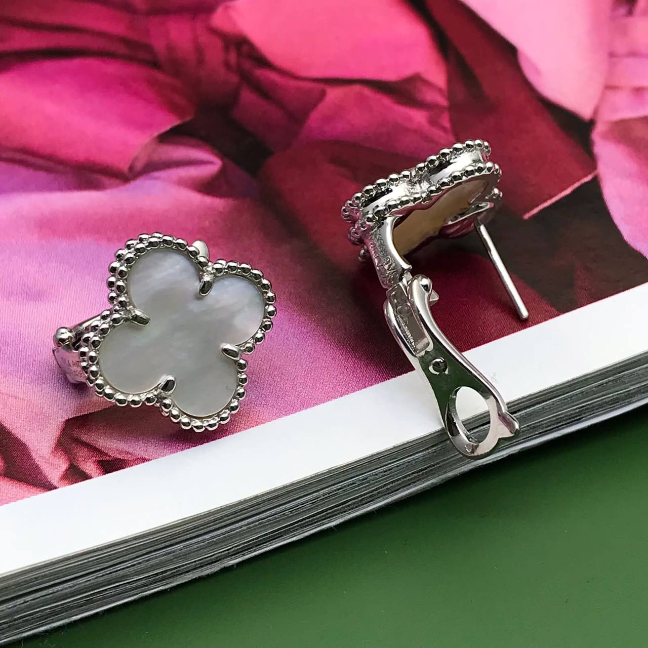 Серьги Van Cleef LUX-87018 – это изысканное ювелирное украшение, которое подчеркнет ваш стиль и элегантность. Серьги выполнены в форме четырехлистного клевера, с перламутровыми вставками, и обрамлены серебряной оправой, придающей им неповторимый шарм. Этот аксессуар станет прекрасным дополнением к вашему образу, добавив нотку роскоши.