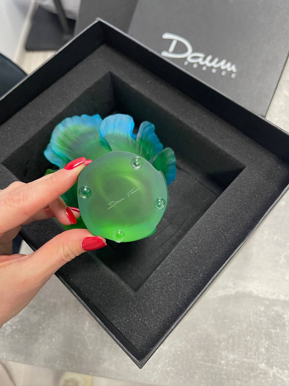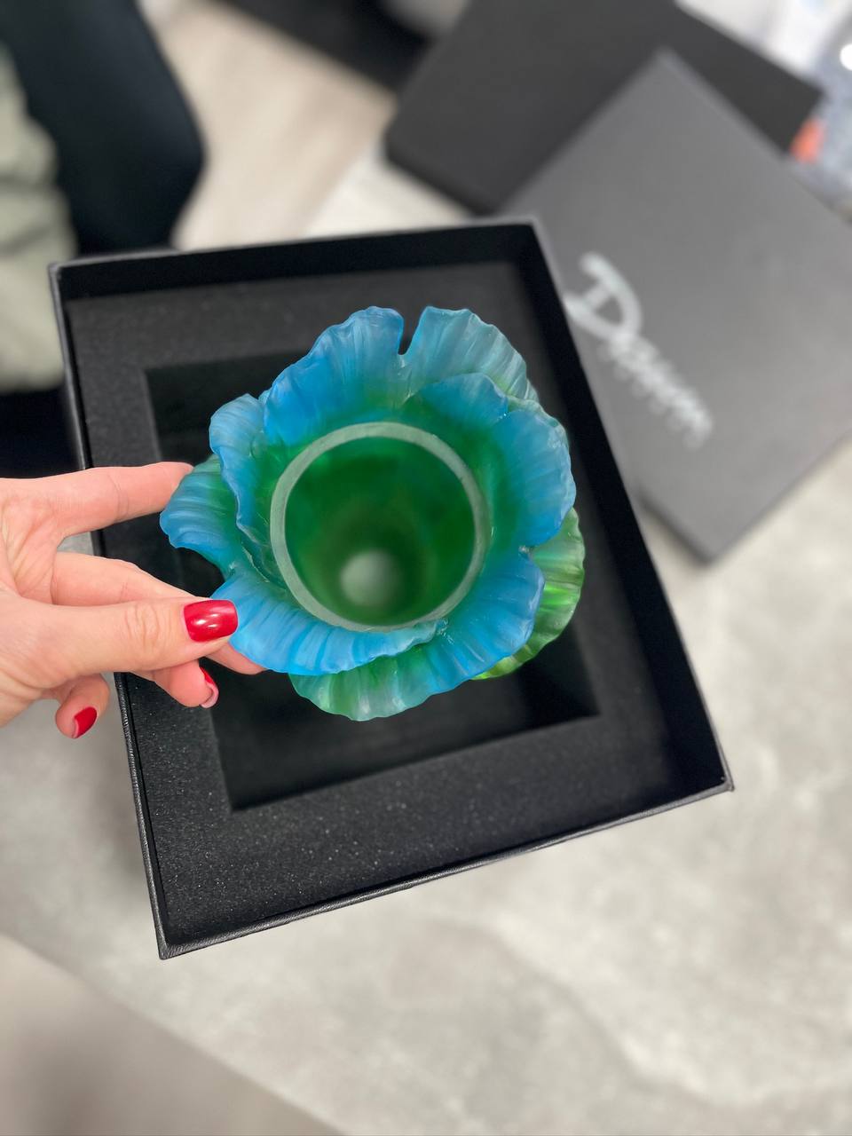 Ваза DAUM 17см LUX-116536 — это изящный предмет декора, выполненный в форме распустившегося цветка, создающий ощущение легкости и свежести. Ваза привлекает внимание своим градиентным переходом от насыщенного синего к нежному зеленому, имитирующим естественные оттенки лепестков. Она идеально подойдет для оформления интерьера, добавляя нотку элегантности и утонченности.