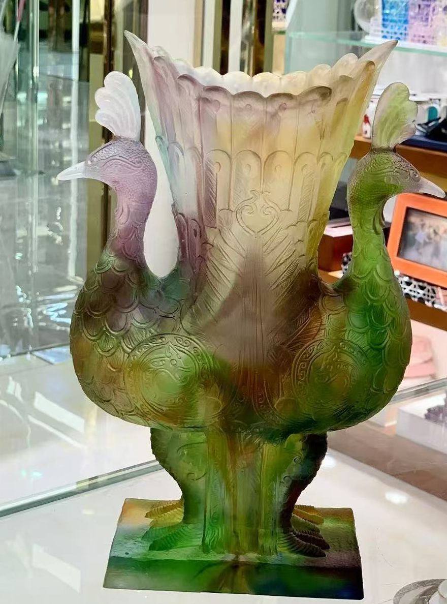Ваза Daum LUX-117517 представляет собой изысканный предмет декора, выполненный в ярких, переливающихся оттенках. Ваза выполнена в виде двух павлинов, переходящих в изящную вазу. Дизайн вазы сочетает в себе элементы природной тематики и утонченного искусства, создавая атмосферу роскоши и изысканности.