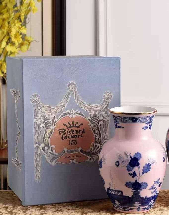 Ваза GINORI 25 см LUX-119677 - это элегантный предмет декора, который привнесет изысканность в ваш интерьер. Ваза выполнена в нежно-розовом цвете с утонченным синим цветочным узором, что делает ее идеальным дополнением к любому стилю. Ее классическая форма и изысканный дизайн подчеркивают утонченный вкус владельца.