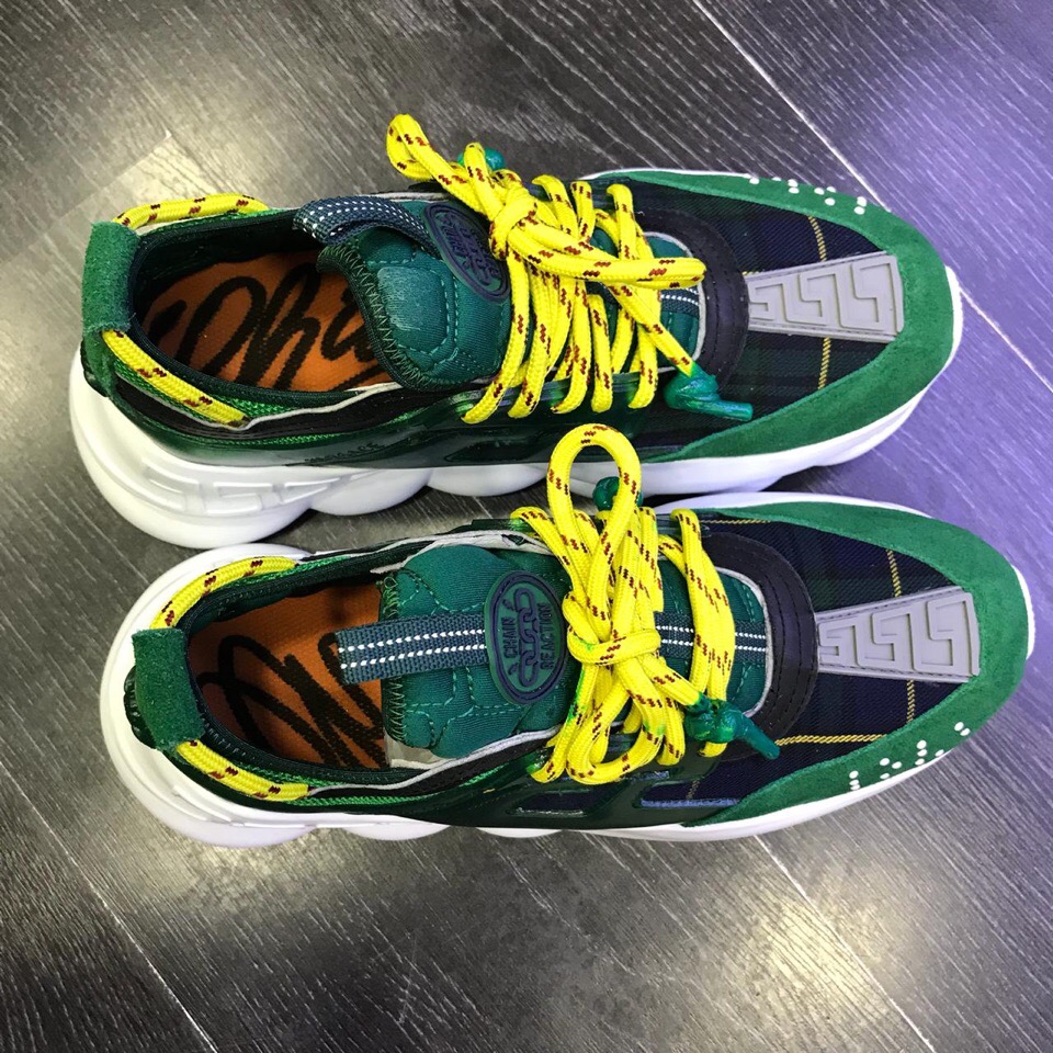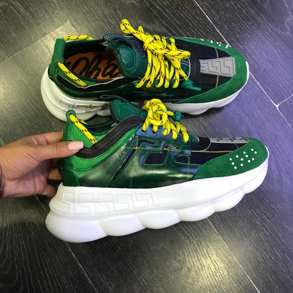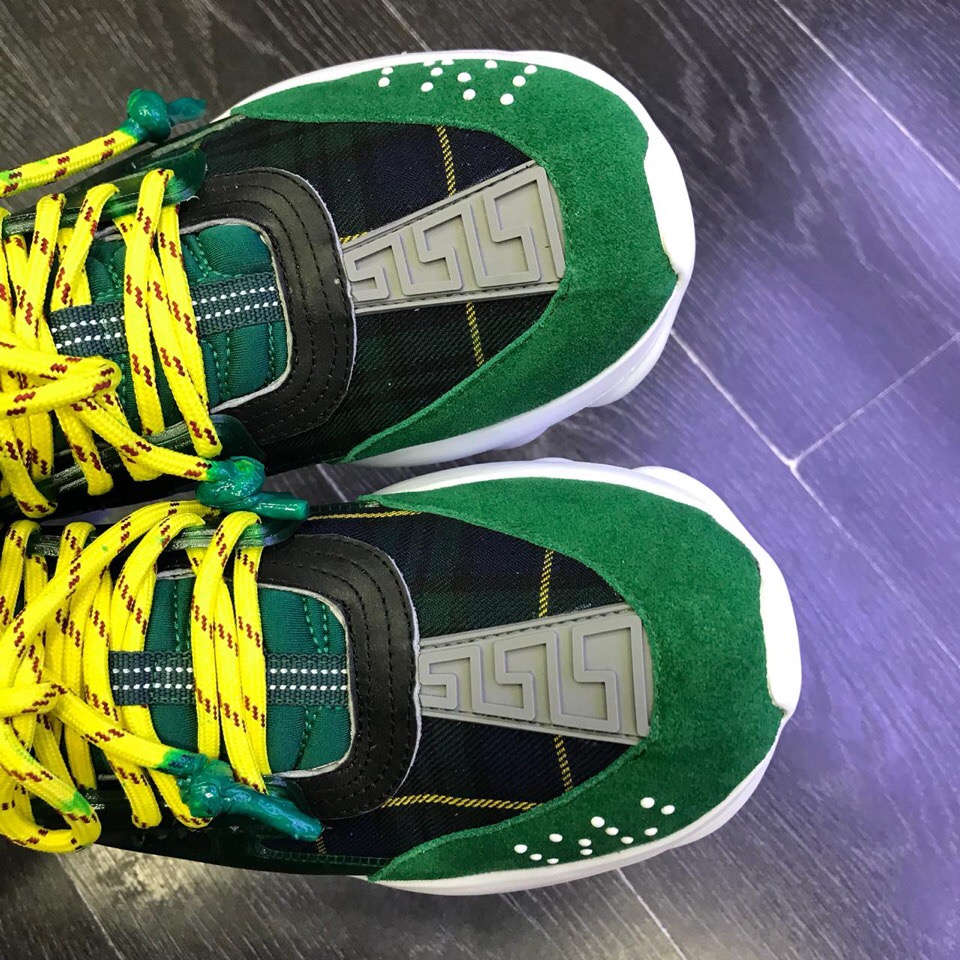 Стильные мужские кроссовки Versace ОМ-018 выполнены в смелом дизайне, сочетающем в себе классические элементы и современные тренды. Яркие желтые шнурки и контрастная клетчатая вставка в сочетании с глянцевыми зелеными элементами создают запоминающийся образ. Массивная белая подошва с узнаваемым узором обеспечивает комфорт и устойчивость.