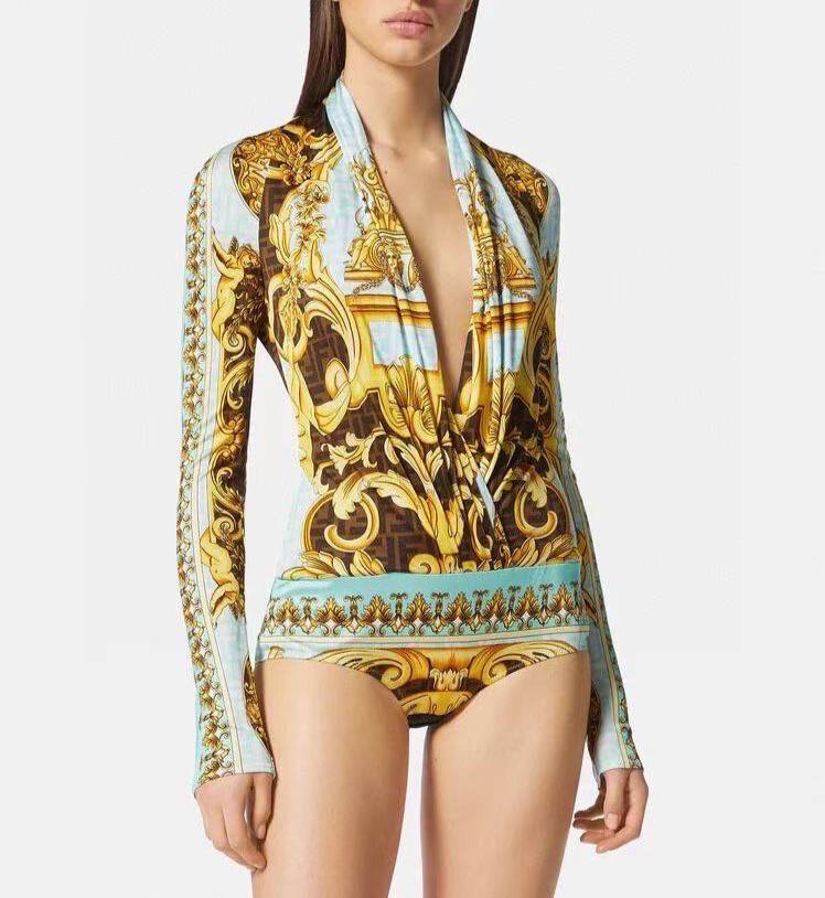 Боди Versace LUX-70854 - это роскошное боди, выполненное в неповторимом стиле Versace. Дизайн боди представляет собой сочетание ярких цветов и замысловатых узоров, создавая эффектный и элегантный образ. Оно идеально подходит для создания стильных и запоминающихся образов.