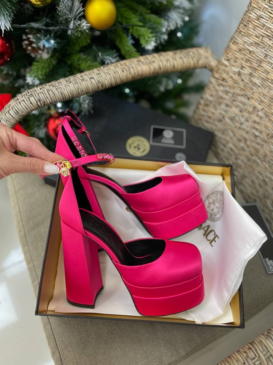 Туфли Versace LUX-60584 – это воплощение элегантности и смелого дизайна. Эти роскошные босоножки на высоком блочном каблуке и платформе, выполненные в насыщенном фуксиевом цвете, станут ярким акцентом любого образа. Детали с кристаллами и золотистая фурнитура подчеркивают узнаваемый стиль бренда Versace.