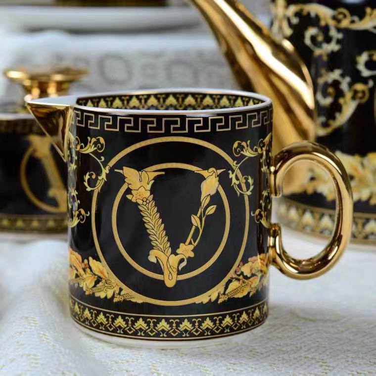 Чайный сервиз Versace LUX-94451 - это изысканный предмет сервировки, который сочетает в себе роскошь и элегантность. Сервиз выполнен в чёрном цвете с золотыми узорами и изображением головы Медузы Горгоны. Он идеально подходит для создания торжественной атмосферы во время чаепития.