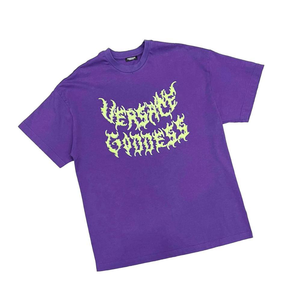 Футболка Versace LUX-88970 представляет собой стильный предмет гардероба от известного бренда. Фиолетовая футболка с ярким неоновым принтом, который придает ей современный вид. Эта футболка идеально подойдет для создания повседневных образов.