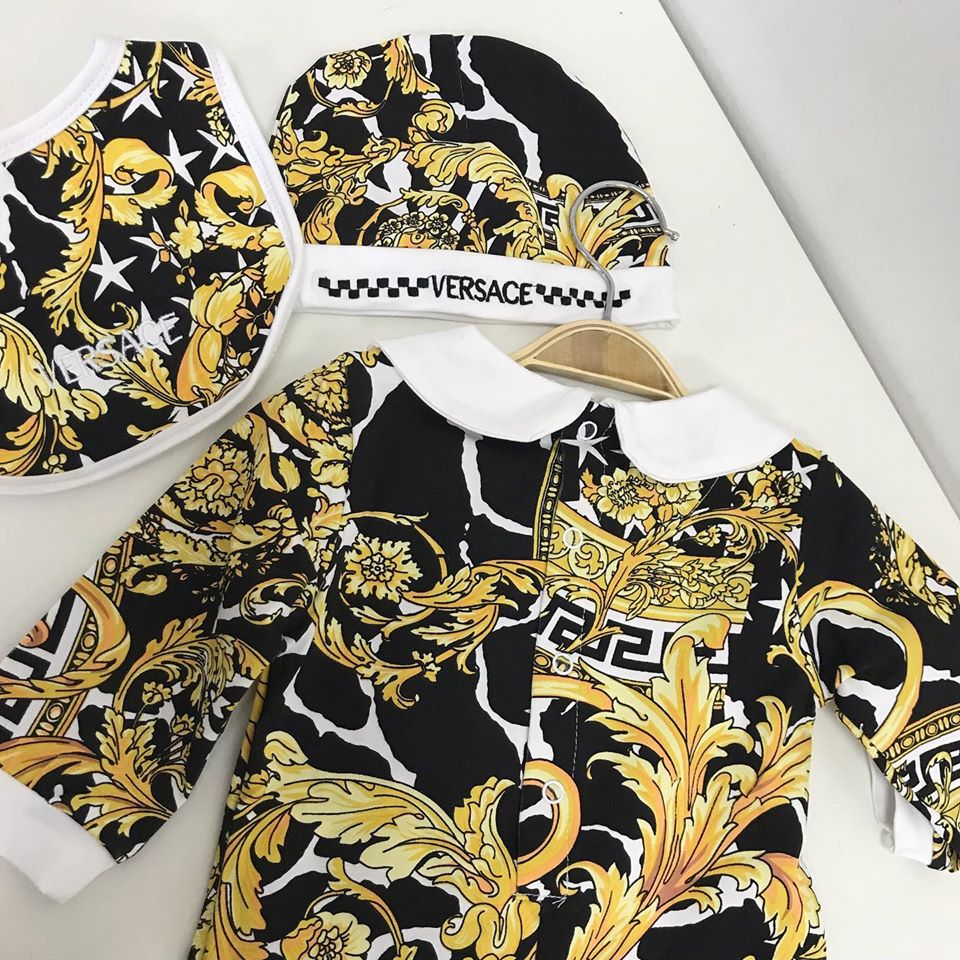 Этот роскошный комплект из трех предметов Versace LUX-26445, состоящий из комбинезона, шапочки и слюнявчика, выполнен в узнаваемом стиле бренда. Яркий золотой принт на черном фоне придает изделию эксклюзивный вид, делая его идеальным выбором для особых случаев или в качестве подарка. Комплект обеспечивает максимальный комфорт для малыша, сочетая в себе стиль и практичность.