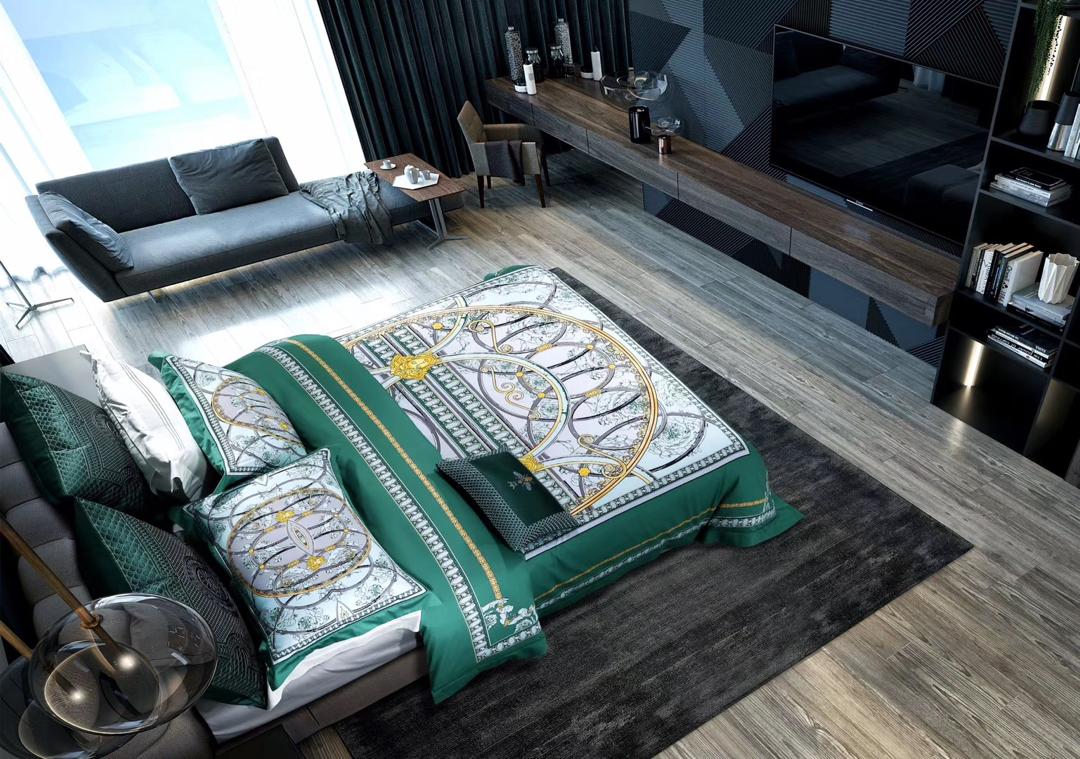 Комплект постельного белья Versace LUX-19164 представляет собой роскошное решение для спальни, выполненное в классическом стиле с узнаваемыми мотивами бренда. Богатый зеленый цвет в сочетании с изысканным принтом создает ощущение элегантности и комфорта. Этот комплект идеально подойдет для тех, кто ценит высокое качество и изысканный дизайн в каждой детали интерьера.
