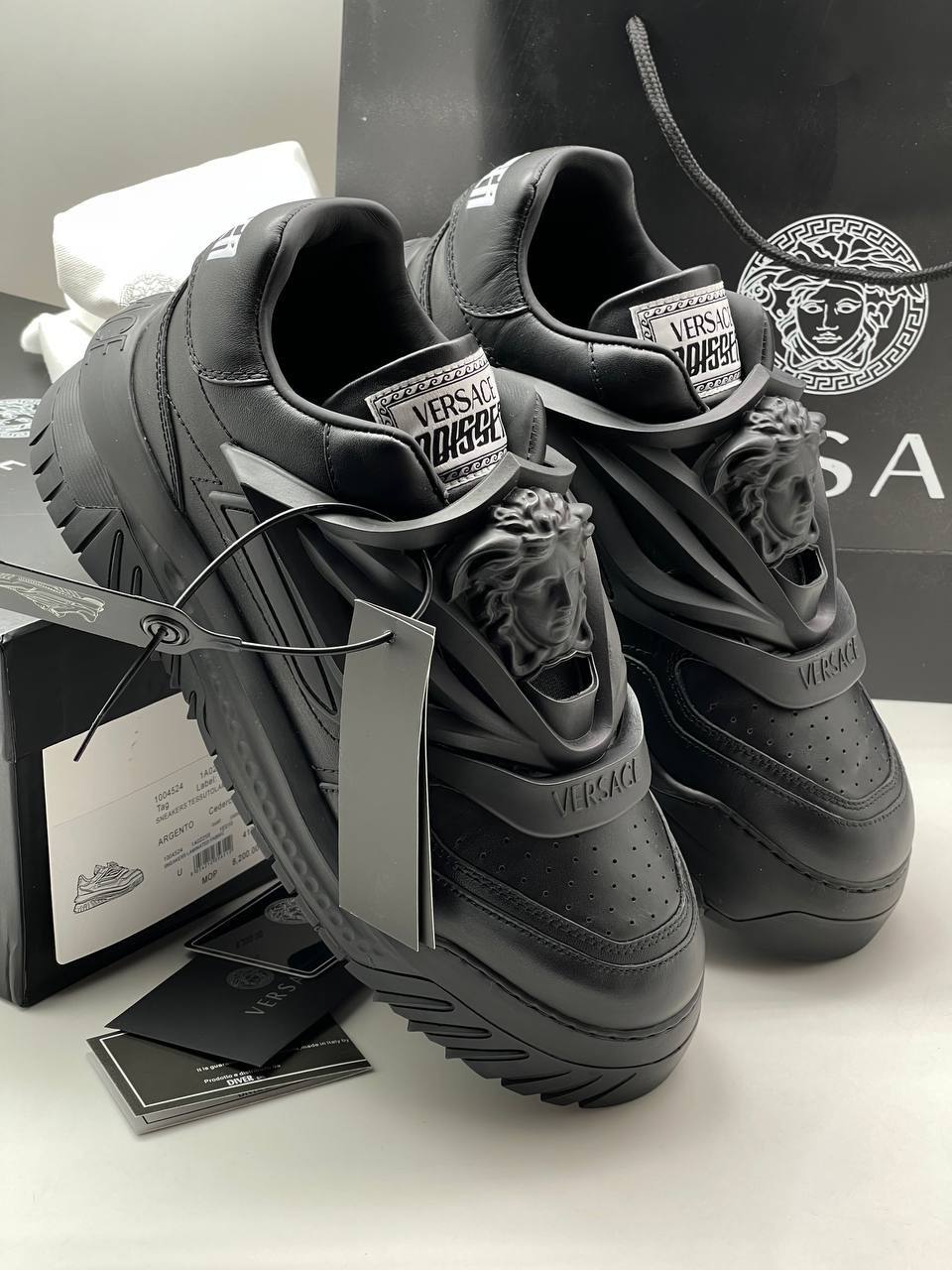 Кроссовки Versace LUX-94392 — это воплощение смелого стиля и современной моды. Эти кроссовки выполнены в черном цвете, который придает им элегантность и универсальность. Отличительной чертой модели является декоративная деталь в виде головы Медузы Горгоны.