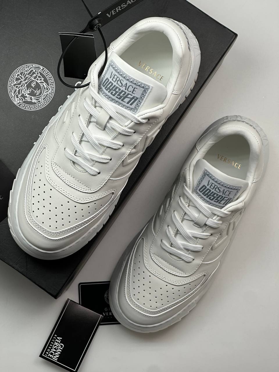 Кроссовки мужские Versace LUX-86629 — это воплощение элегантности и стиля. Белые кожаные кроссовки с узнаваемым логотипом бренда, подойдут для повседневной носки и дополнят ваш образ.