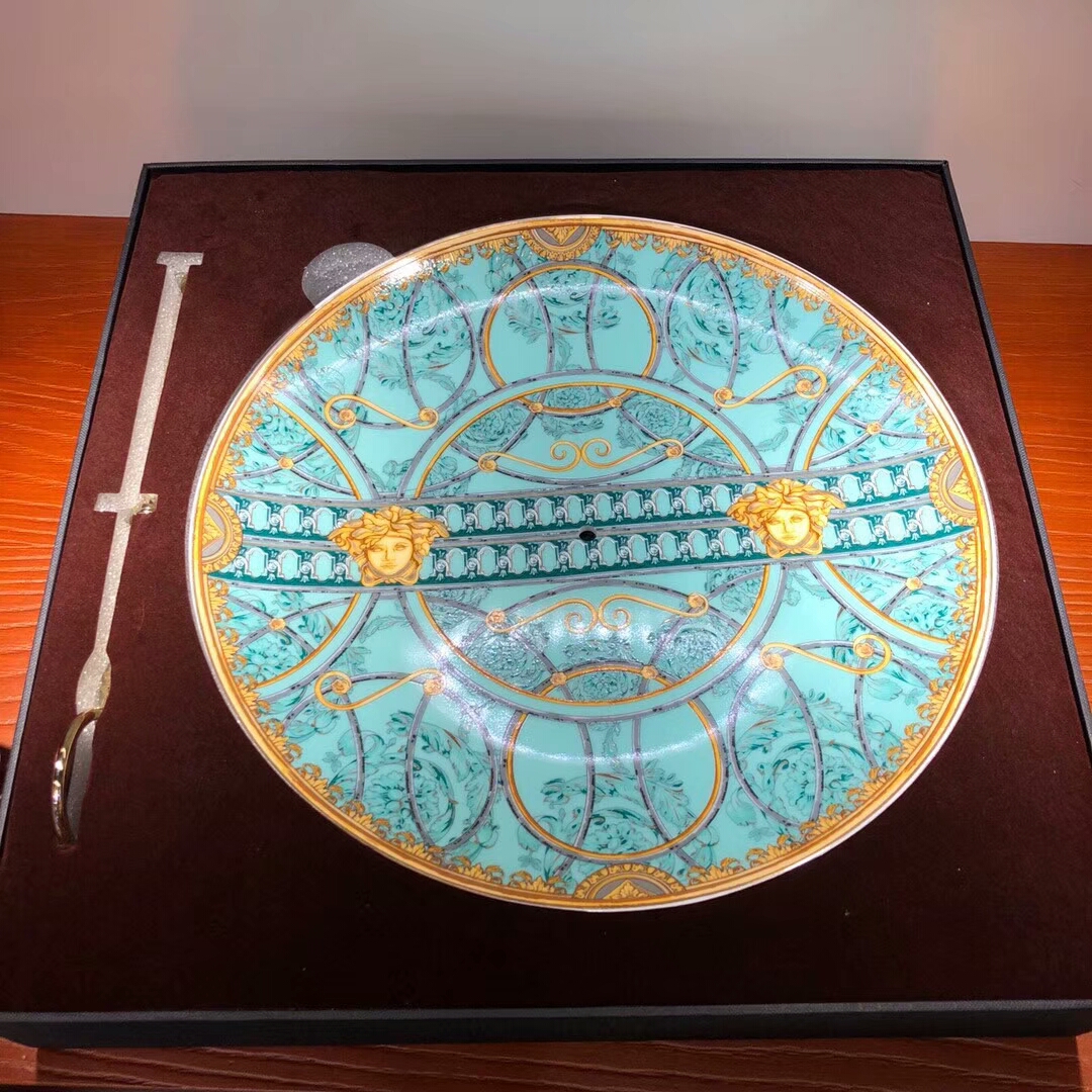 Эта двухъярусная минажница Versace LUX-19365 выполнена в роскошном стиле, характерном для бренда Versace. Изделие украшено узнаваемым орнаментом с изображением головы Медузы и богатым узором в бирюзовых и золотых тонах. Оно станет изысканным дополнением к сервировке стола, подчеркивая утонченный вкус владельца.