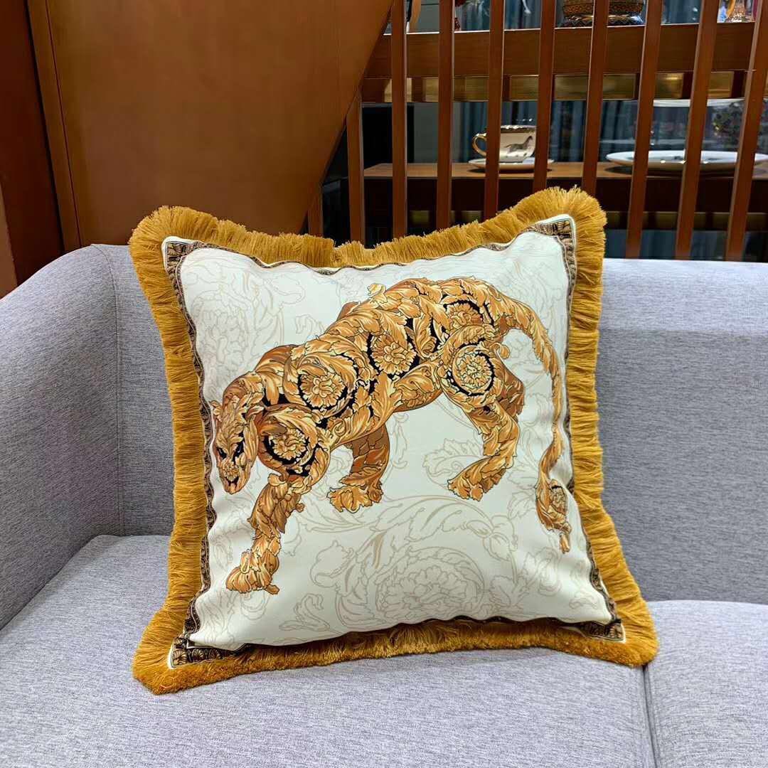 Наволочка на декоративные подушки Versace LUX-41717 – это изысканный элемент интерьера, который привнесет роскошь и утонченность в ваше пространство. Дизайн с изображением величественного золотого тигра на фоне утонченного орнамента в стиле Versace создает атмосферу величия и эксклюзивности.