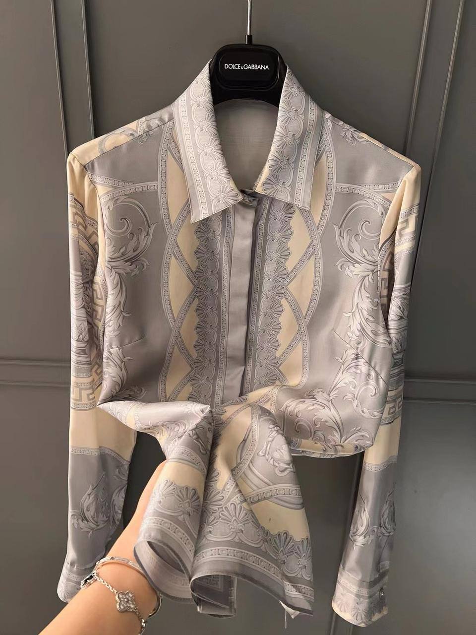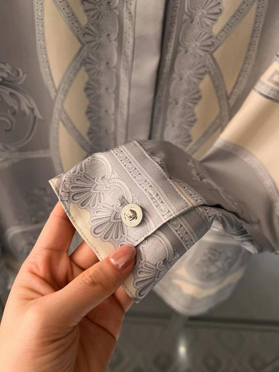 Рубашка Versace LUX-117790 – это стильная рубашка, сочетающая в себе элегантность и изысканность. Рубашка выполнена в серо-кремовой цветовой гамме с уникальным принтом, который придает ей особый шарм. Этот предмет гардероба идеально подходит для создания как повседневных, так и более формальных образов.