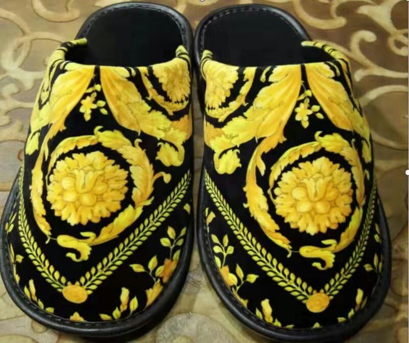 Тапки Versace LUX-19291 – это воплощение роскоши и уникального стиля. Обувь декорирована знаковым принтом бренда Versace, выполненным в насыщенных золотых тонах на глубоком черном фоне. Оригинальный дизайн, вдохновленный античными мотивами, придает тапочкам изысканный и запоминающийся вид. Эти тапки станут эффектным дополнением к домашнему образу, подчеркивая статус и хороший вкус владельца.