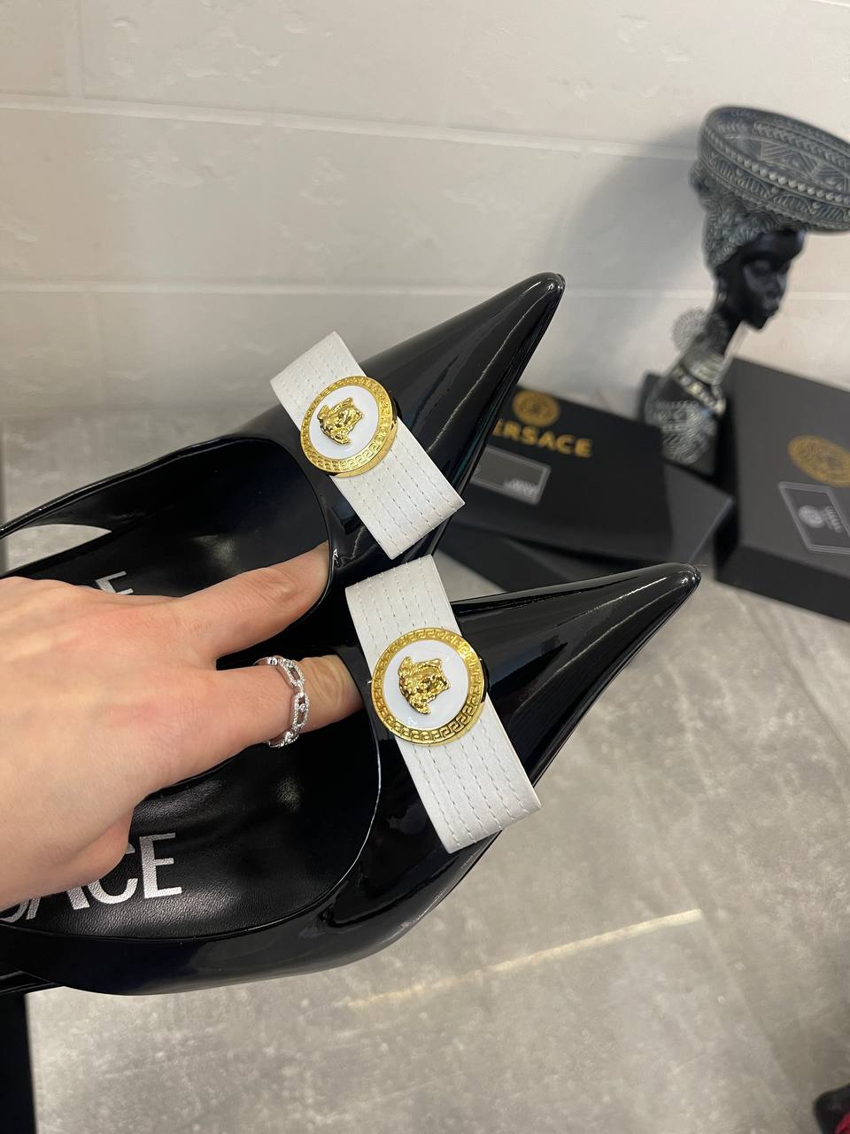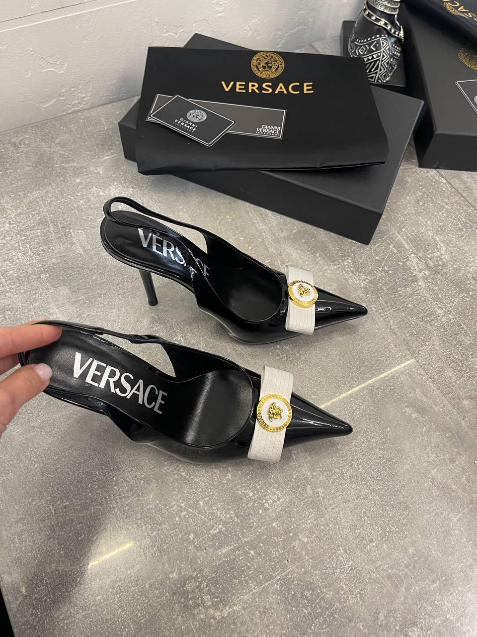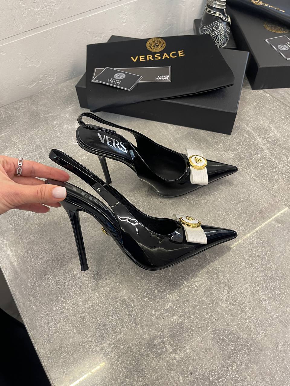 Туфли Versace LUX-102467 – это элегантная модель от известного бренда. Туфли выполнены в классическом стиле, сочетая глянцевый черный верх с контрастными белыми деталями и золотистой фурнитурой. Идеально подойдут для создания изысканных образов.