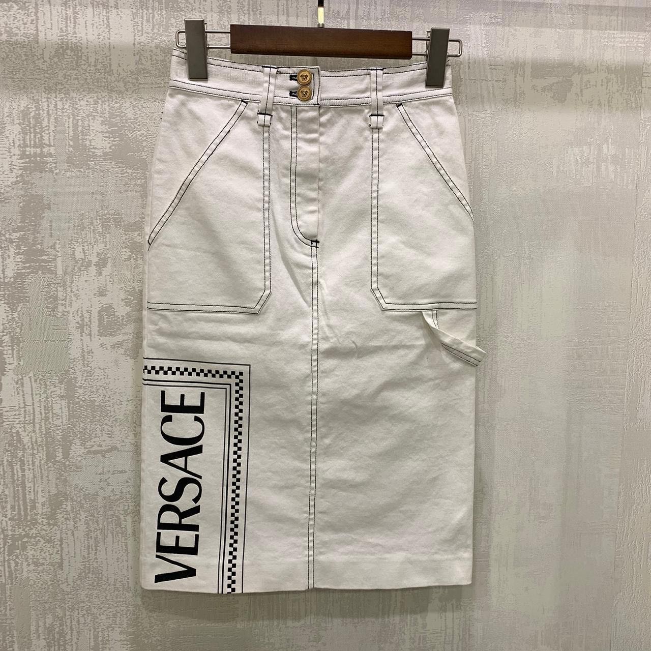 Юбка Versace LUX-31786 — это стильная и современная модель, сочетающая в себе элементы утилитарного дизайна и узнаваемый бренд. Акцентные контрастные строчки и практичные накладные карманы придают юбке характерный вид, а крупный логотип Versace на боковой части подчеркивает ее эксклюзивность. Эта юбка станет ярким дополнением к вашему гардеробу, предлагая как комфорт, так и возможность создать запоминающийся образ.