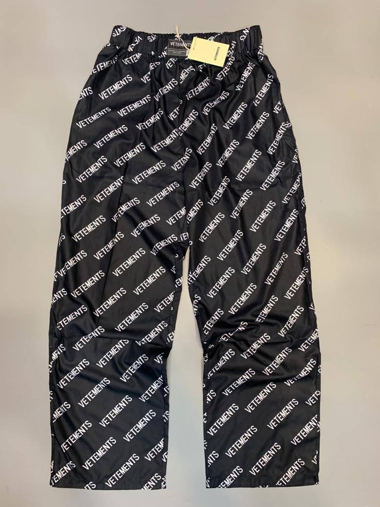 Брюки Vetements LUX-53347 представляют собой модный элемент в стиле бренда Vetements. Их отличительной чертой является непрерывный принт с названием бренда, выполненный белыми буквами на черном фоне, что создает узнаваемый и стильный образ. Дизайн брюк сочетает в себе уличный стиль с элементами высокой моды, делая их универсальным выбором для создания эффектных образов.