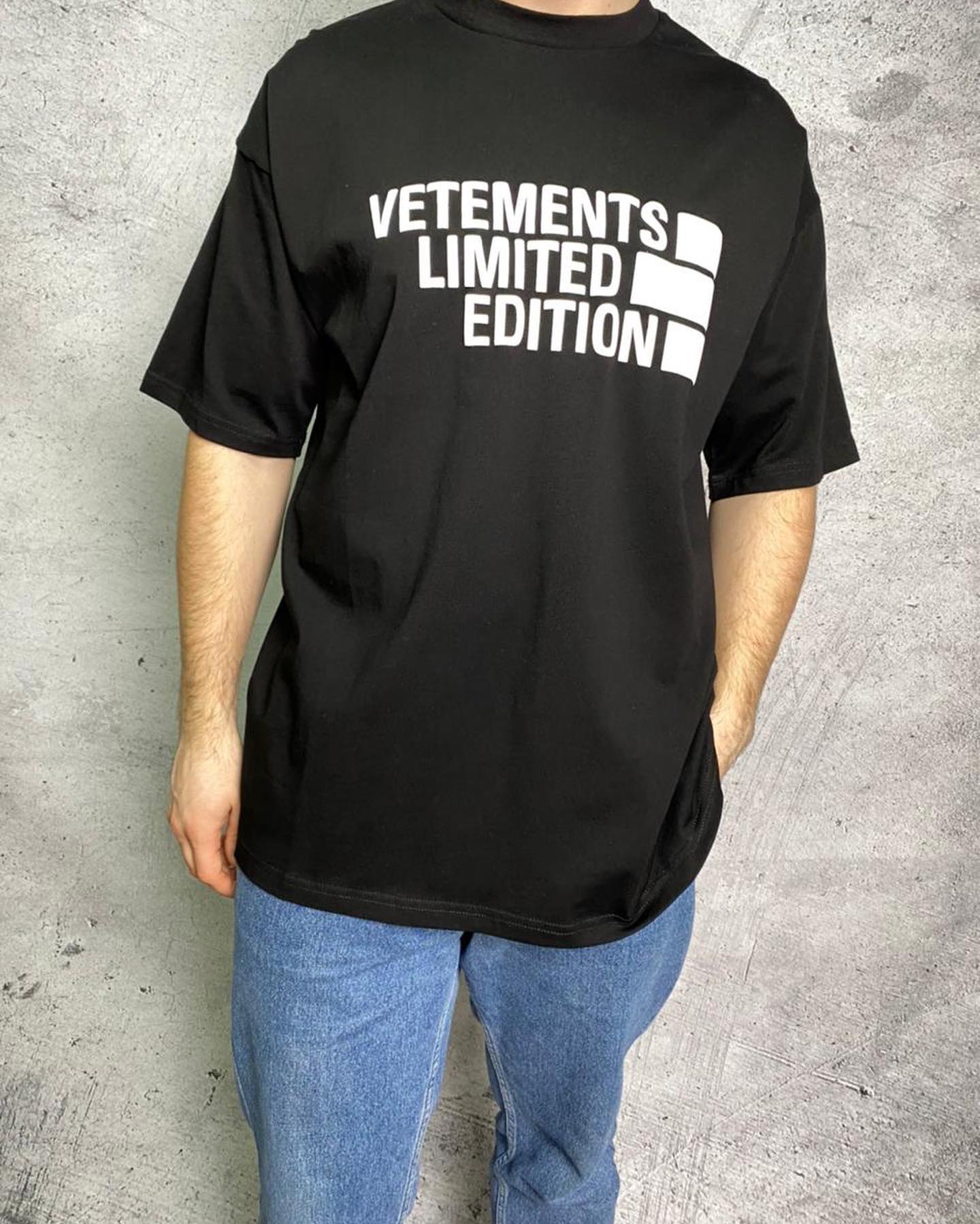 Футболка Vetements LUX-47234 — это базовая черная модель с объемным кроем, дополненная контрастной графикой с названием бренда и слоганом "LIMITED EDITION" на груди. Она идеально вписывается в стиль streetwear, предлагая минималистичный, но узнаваемый дизайн, который легко интегрируется в повседневные образы.