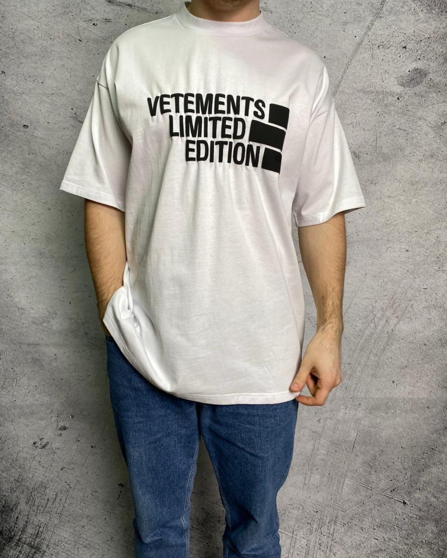 Футболка Vetements LUX-47235 выполнена в лаконичном дизайне, характерном для бренда Vetements. Данная модель представляет собой оверсайз футболку белого цвета с принтом "VETEMENTS LIMITED EDITION" черного цвета. Ее свободный крой и минималистичный дизайн делают ее универсальным элементом гардероба.