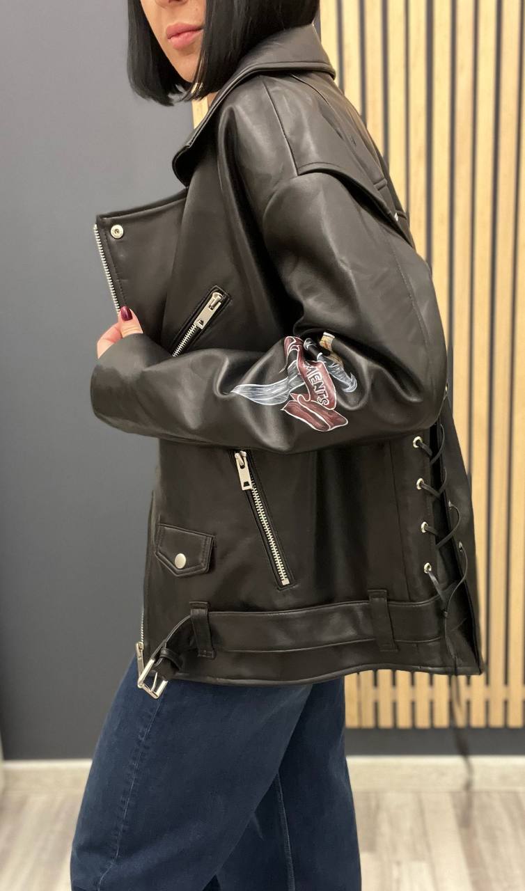 Кожаная куртка Vetements LUX-102972 представляет собой стильную и современную модель, выполненную в классическом черном цвете. Куртка имеет свободный крой, дополненный деталями в стиле байкерской эстетики. Идеально подходит для создания ярких и запоминающихся образов.