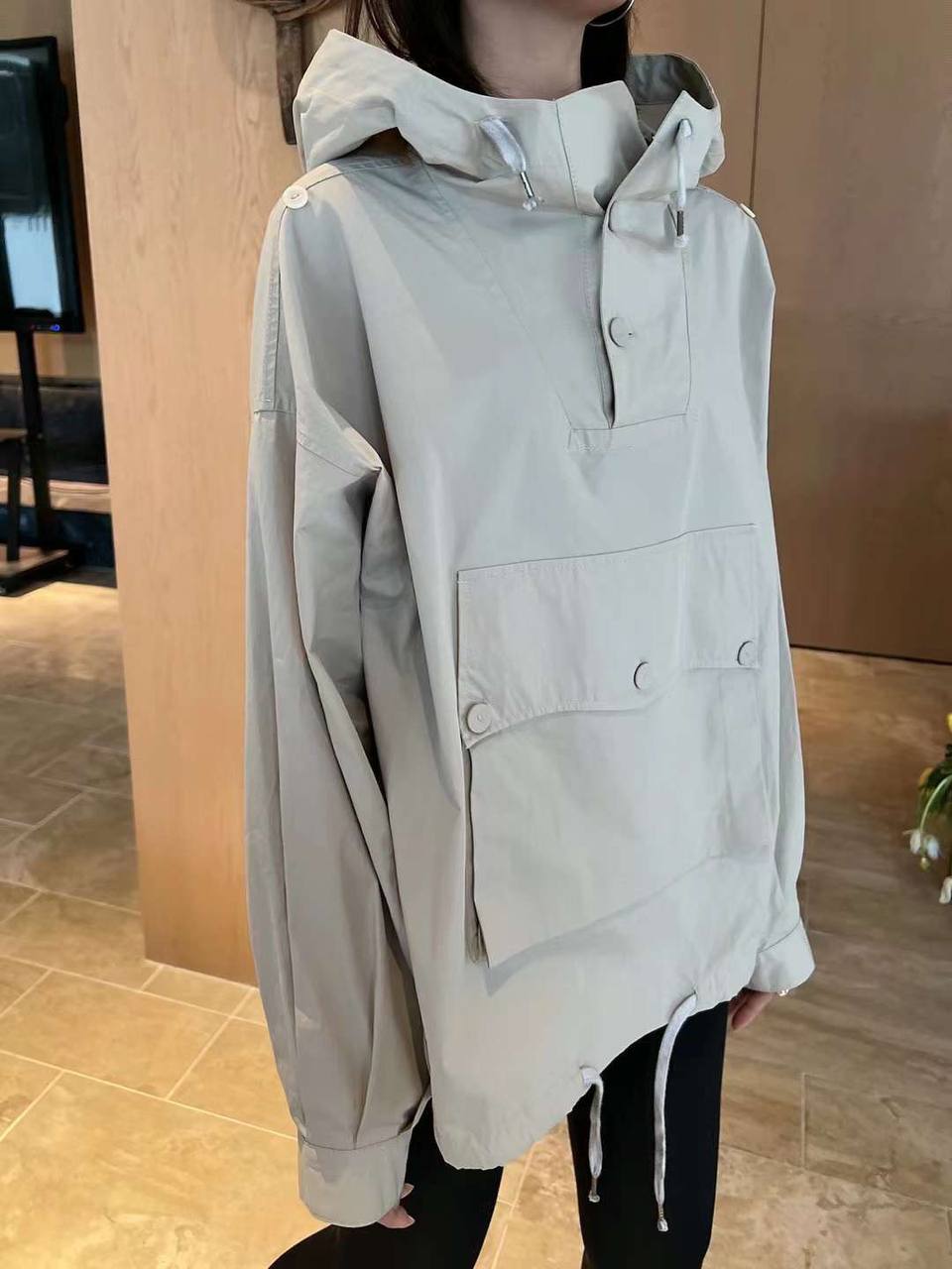 Ветровка LUX-86332 представляет собой стильную и практичную верхнюю одежду, выполненную в спокойном бежевом цвете. Её свободный крой и наличие капюшона делают её идеальным выбором для повседневной носки. Ткань ветровки имеет гладкую текстуру и обладает водоотталкивающими свойствами.