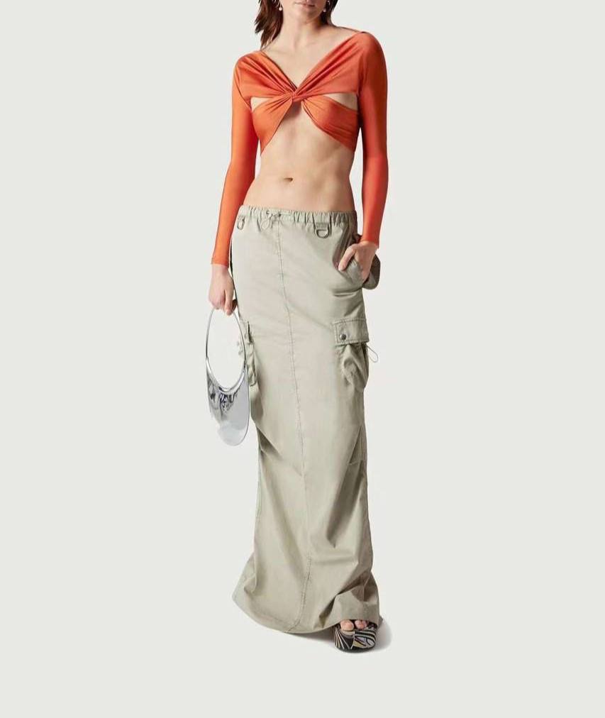 Юбка LUX-91033 - это стильная юбка в стиле карго, сочетающая в себе практичность и модный дизайн. Модель выполнена в цвете хаки и имеет длинный силуэт. Юбка идеально подойдет для создания повседневных образов.