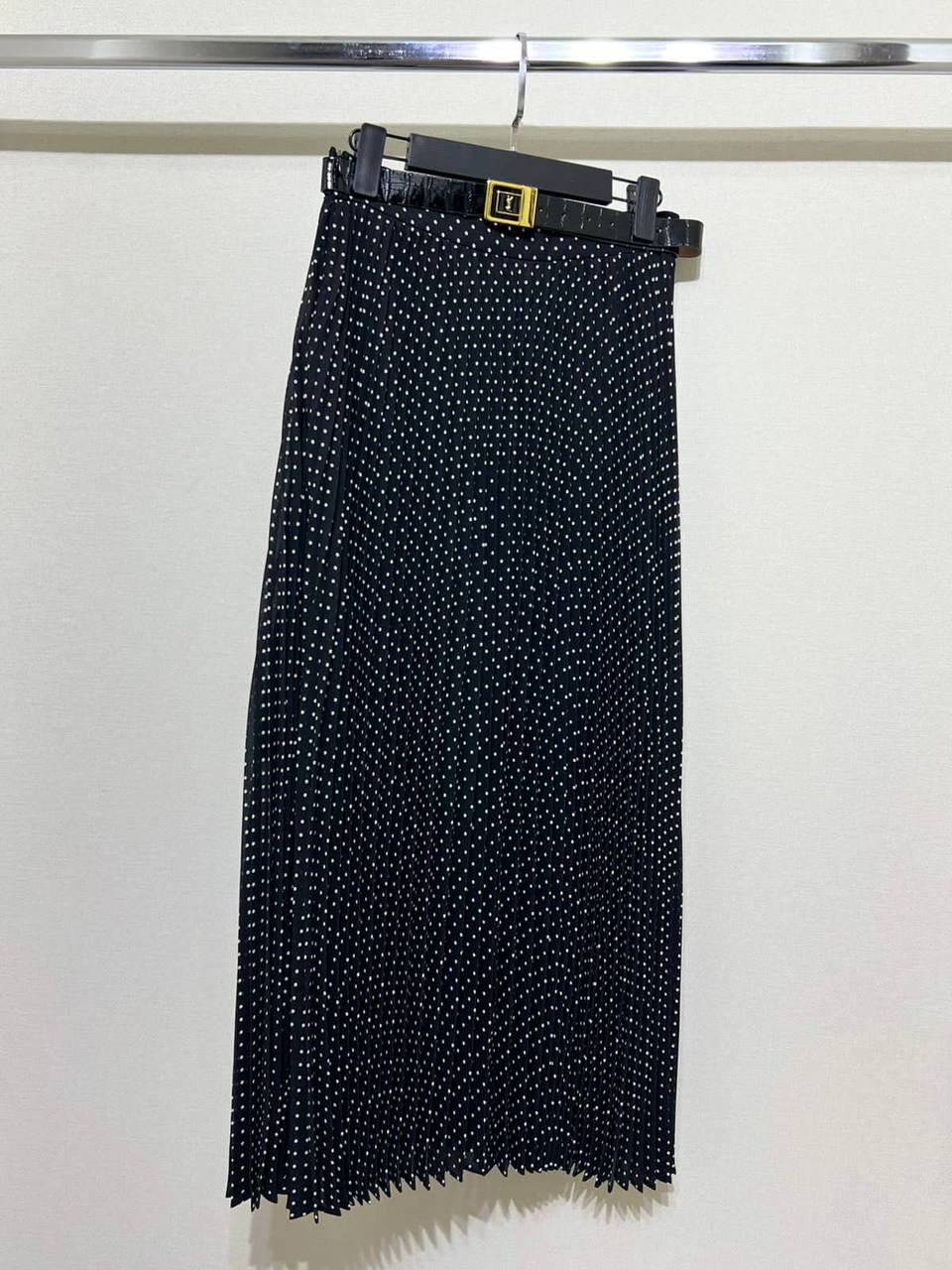 Юбка LUX-101473 — элегантная плиссированная юбка в классическом стиле. Она выполнена в черном цвете с белым горошком, создавая стильный и женственный образ. Идеально подходит для создания разнообразных образов, от повседневных до вечерних.