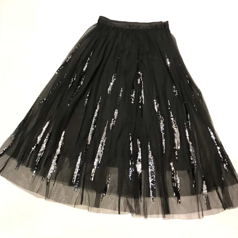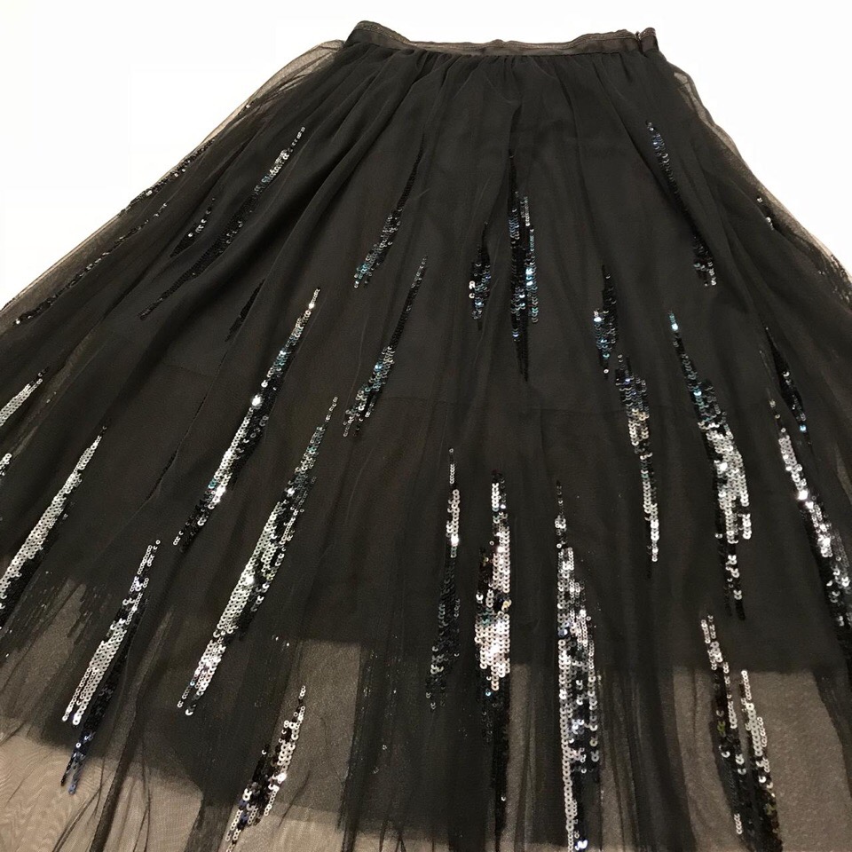 Юбка ОДЖ-292 от бренда "ОДЖ" представляет собой элегантное вечернее решение. Выполненная в черном цвете, эта юбка средней длины украшена вертикальными полосами пайеток, создающих эффект мерцания и праздничности. Воздушная ткань придает модели легкость и объем, делая ее идеальной для особых случаев.