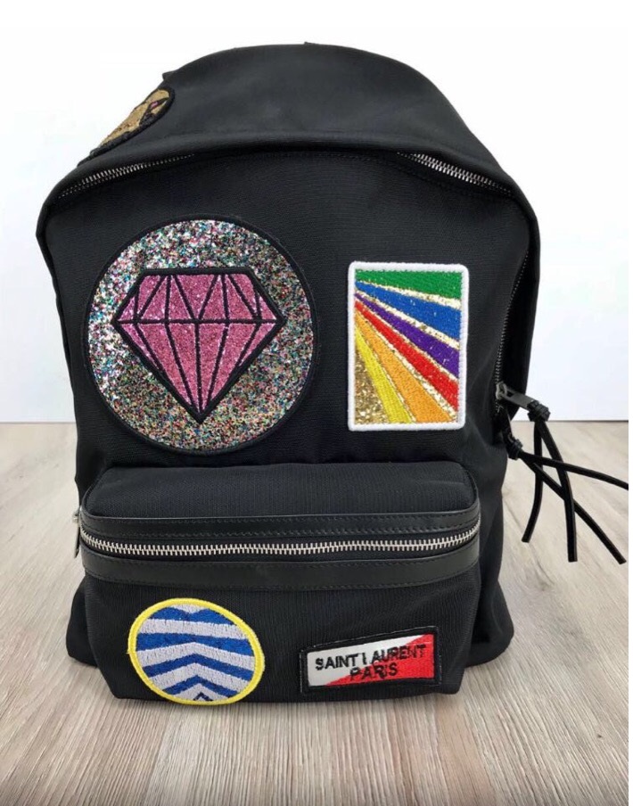 Рюкзак Yves Saint Laurent СЖ-149 представляет собой стильный и яркий аксессуар, выполненный в классическом черном цвете. Его дизайн украшен разнообразными нашивками, включая сверкающий розовый бриллиант, радужный патч и логотип бренда. Этот рюкзак идеально подойдет для тех, кто ценит оригинальность и стремится выделиться из толпы, добавляя образу модный акцент.