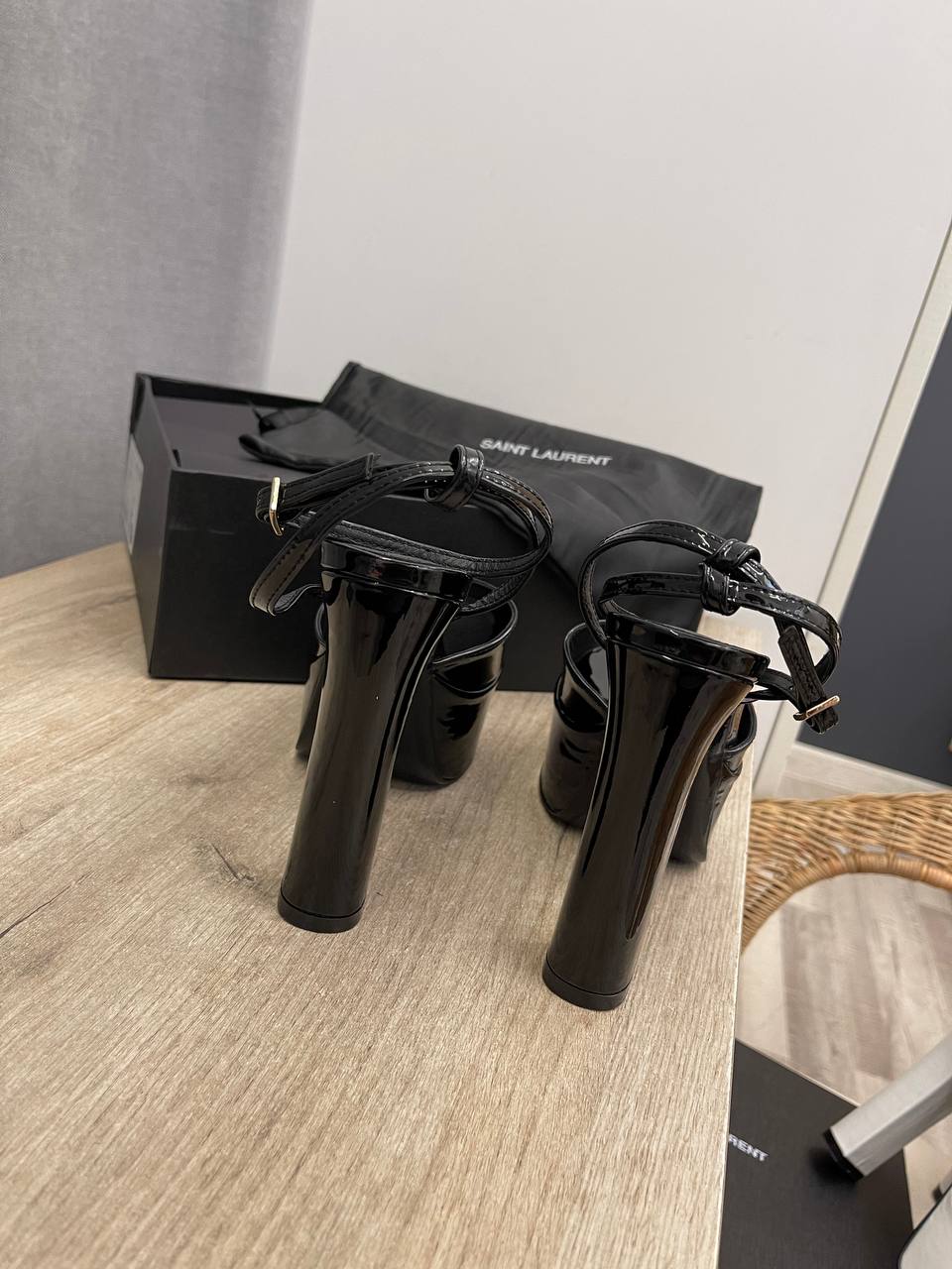 Босоножки Yves Saint Laurent LUX-108825 — это элегантная обувь на высоком каблуке. Чёрный цвет, глянцевая текстура и платформа придают босоножкам стильный вид, который подойдёт для торжественных мероприятий и вечерних выходов.