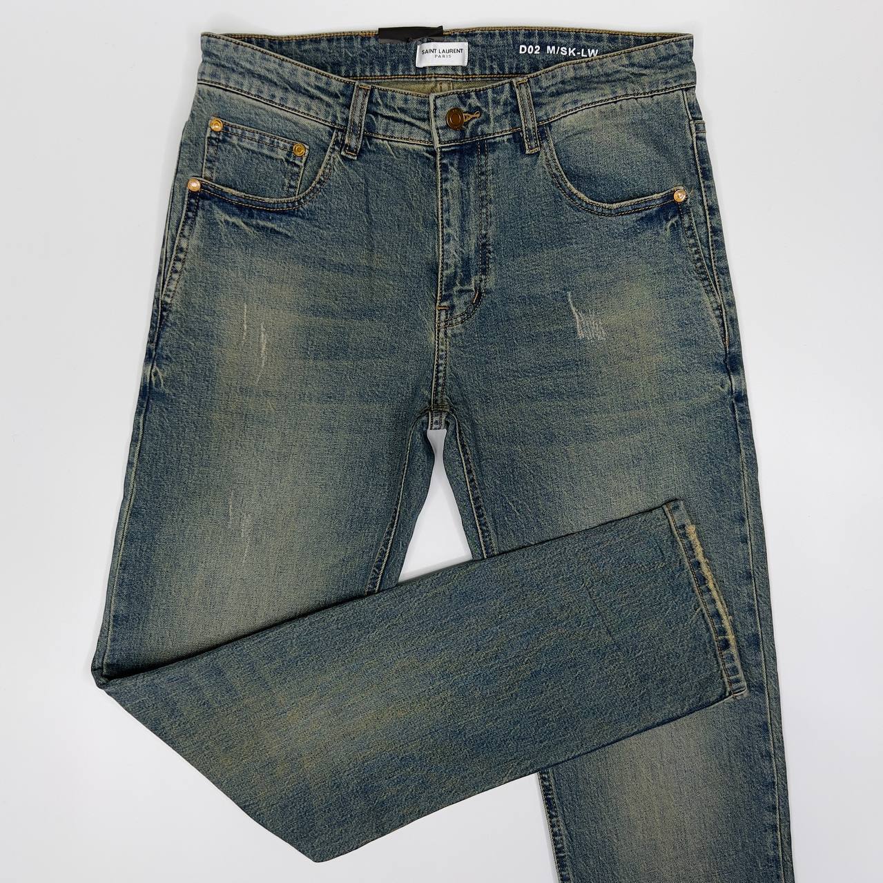 Джинсы Yves Saint Laurent LUX-96886 - это стильные и современные джинсы, выполненные в классическом стиле. Представлены в светло-синем цвете с эффектом потертости, что придает им винтажный вид. Идеально подходят для создания повседневных образов.