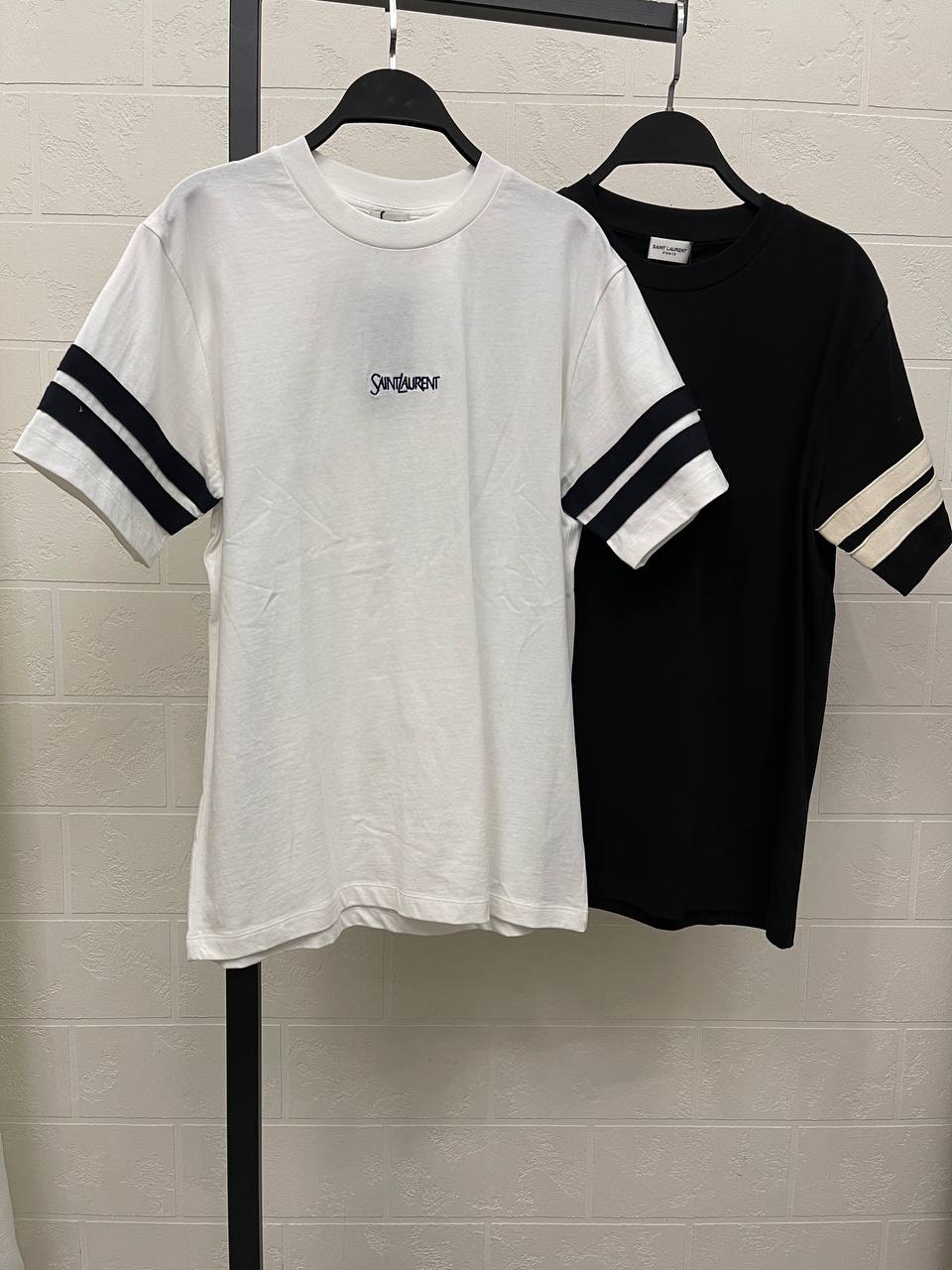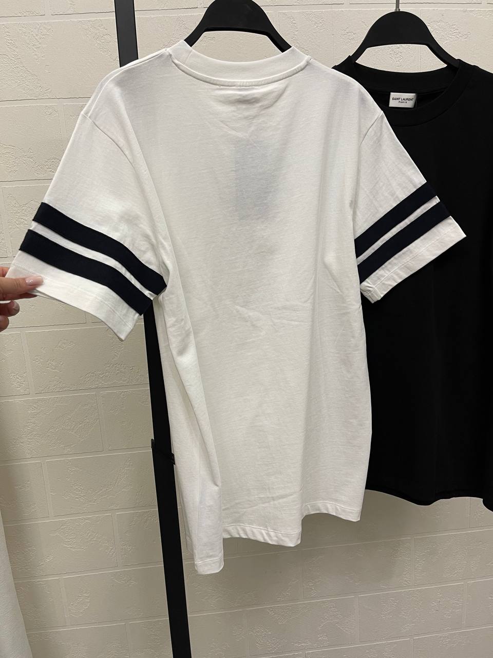 Футболка Yves Saint Laurent (артикул LUX-115654) – это стильный предмет гардероба, сочетающий в себе минимализм и узнаваемый дизайн. Белая футболка с контрастными полосками на рукавах и небольшим логотипом бренда посередине, идеально подойдет для создания различных образов.