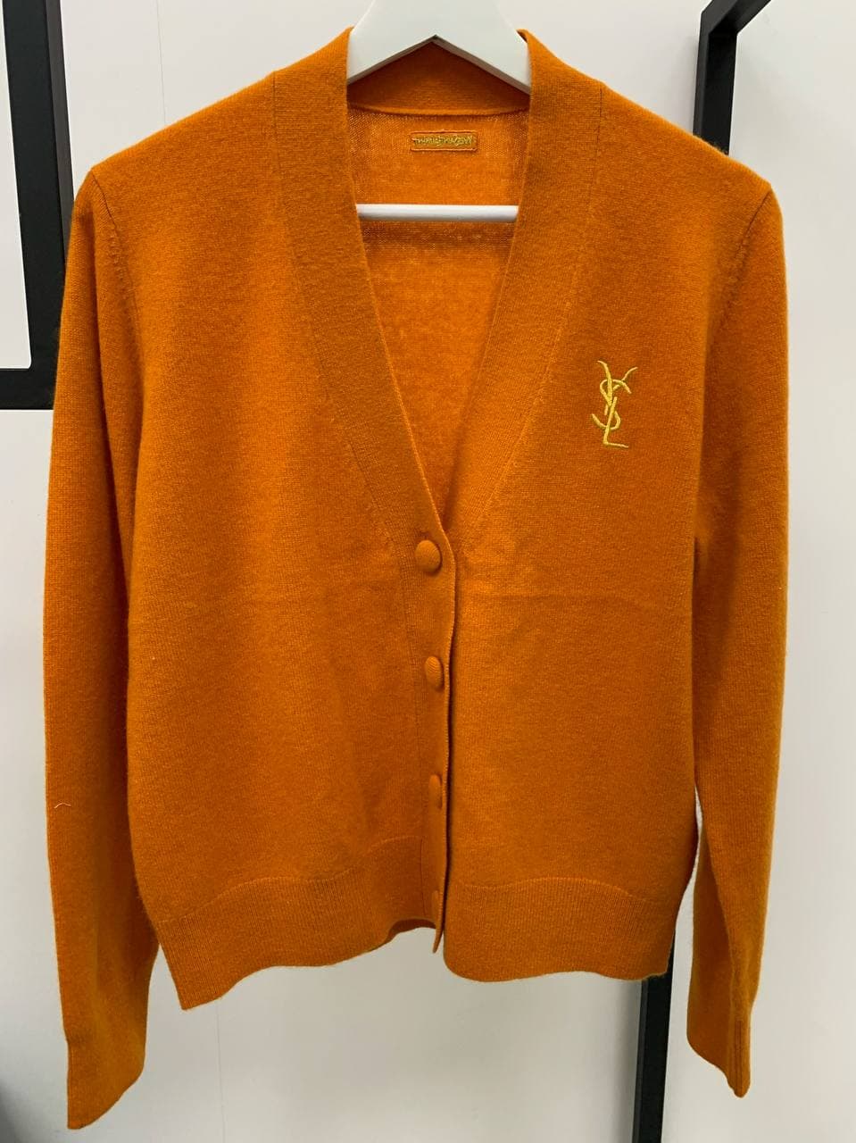 Кардиган Yves Saint Laurent LUX-58908 — это стильный и элегантный предмет гардероба, выполненный в классическом дизайне. Его насыщенный оранжевый цвет и узнаваемый логотип бренда делают его ярким акцентом в любом образе. Этот кардиган идеально подходит для создания многослойных нарядов, добавляя изысканности как повседневным, так и более формальным комплектам.