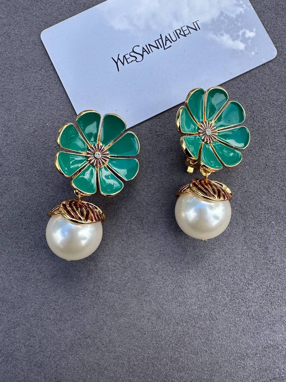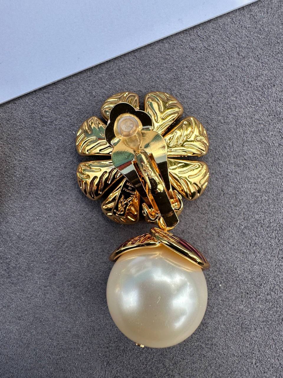 Изысканные клипсы Yves Saint Laurent, сочетающие в себе элегантность и оригинальность. Яркий цветочный мотив и искусственный жемчуг создают эффектный и запоминающийся образ.
