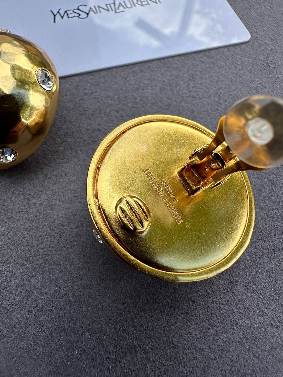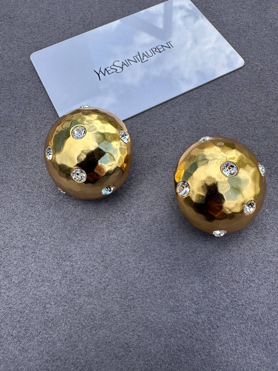 Эти клипсы Yves Saint Laurent – яркий акцент для вашего образа. Круглые, золотистые, украшенные сверкающими кристаллами, они добавят роскоши и элегантности.
