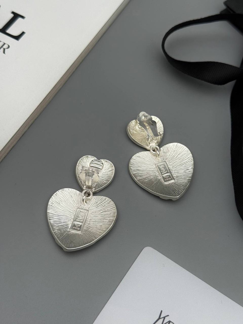 Клипсы Yves Saint Laurent LUX-124502 — это стильные и элегантные украшения от известного французского бренда. Дизайн клипс выполнен в виде двух сердец с повторяющимся логотипом Yves Saint Laurent.